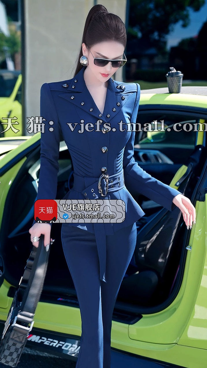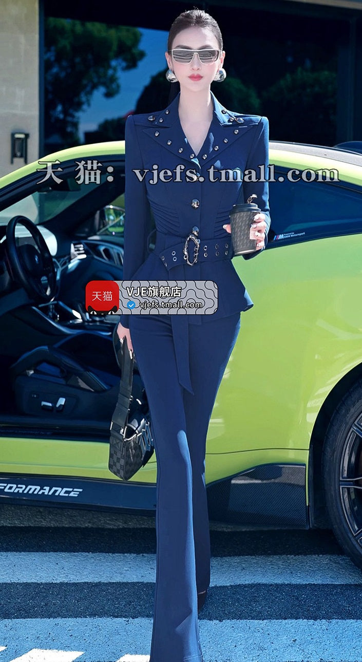 VJE Skirt OL Jacket Micro Flared Pants Two-Piece Set - HIHI.