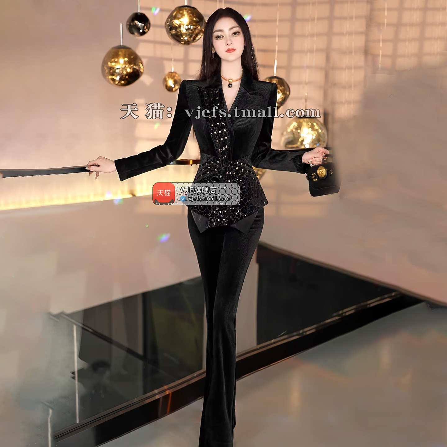 VJE Thickened Velvet Jacket Flared Pants Two-Piece Set Suit-NINI.