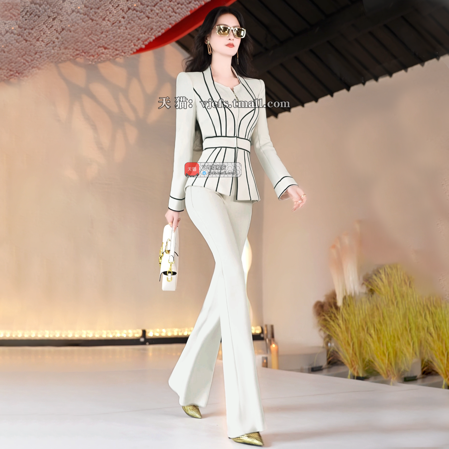 VJE two-piece spliced small suit high-waisted flared pants set - ASOBI.