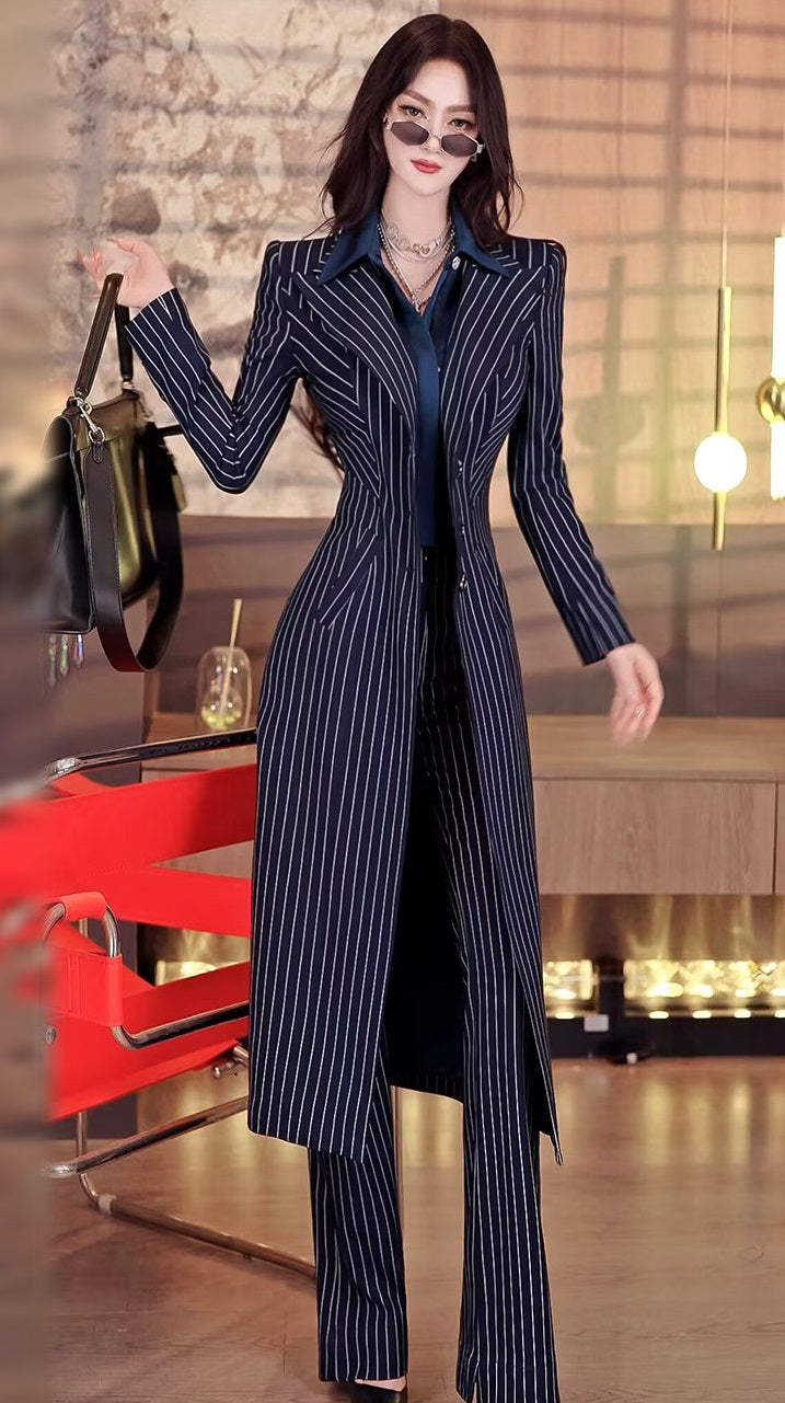 VJE Striped Coat Flared Pants Two-Piece Trench Coat Set-NICH.