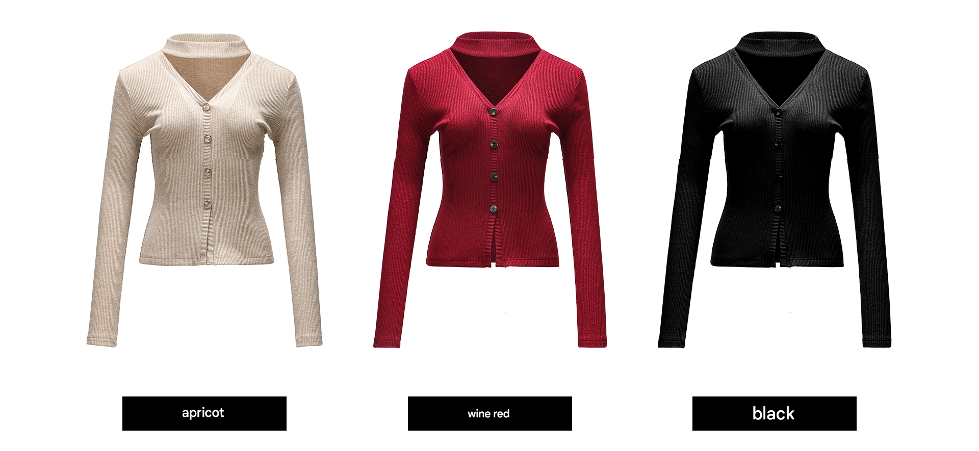 WANGXO | Double-Woven Crushed Silver Silk Knit V-Neck Slim-Fit Top-YANI.