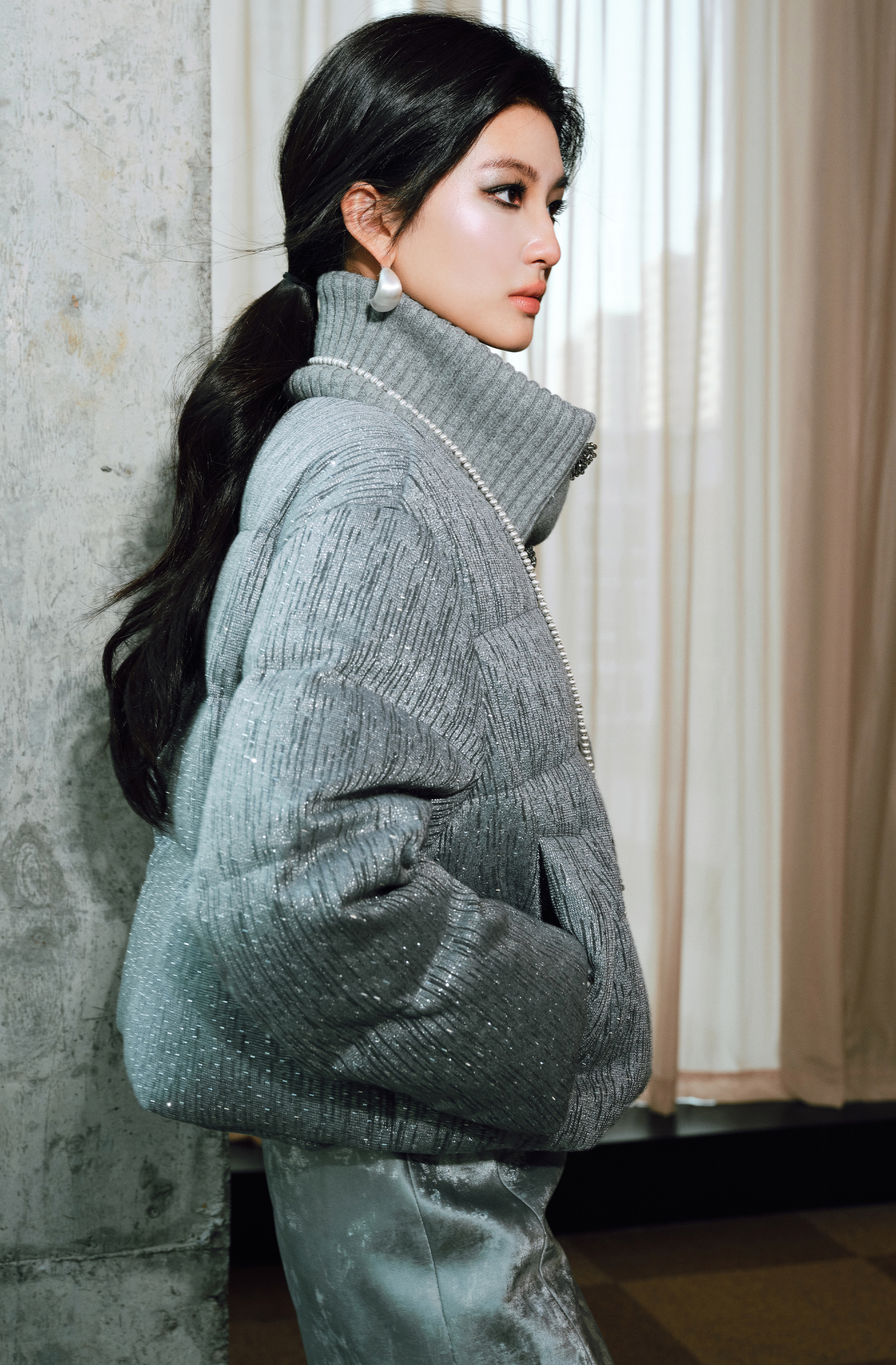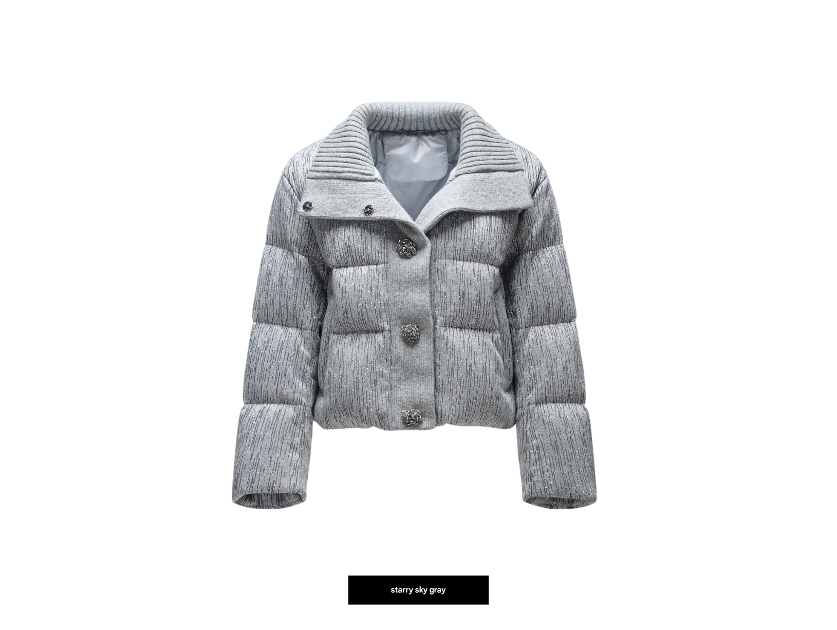 This WANGXO short down jacket combines fixed-spinning wool with a two-color special yarn for a refined, elegant look. Featuring fine flash detailing and hot diamond accents, it offers a sophisticated style while providing warmth and comfort with premium white duck down insulation. Perfect for those seeking a classy yet functional outerwear piece.