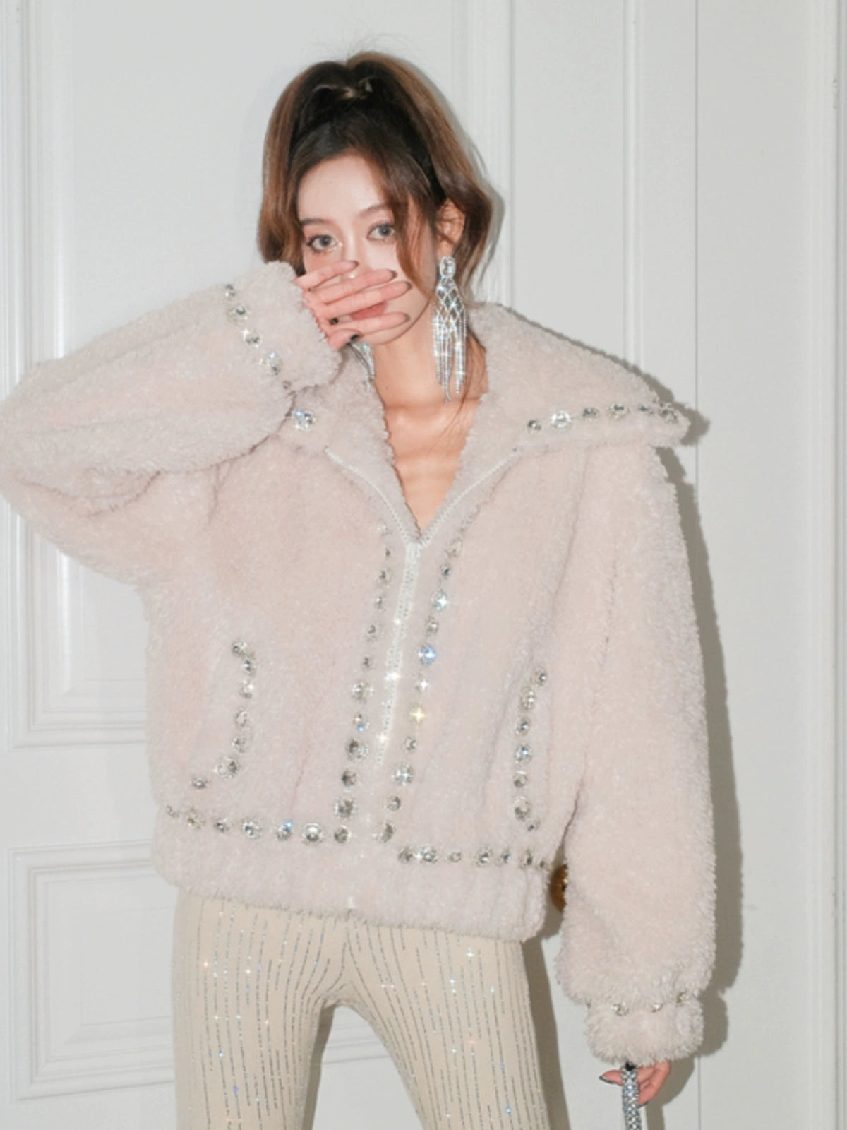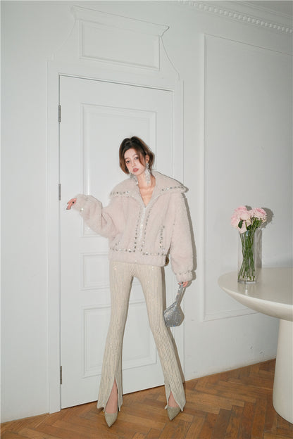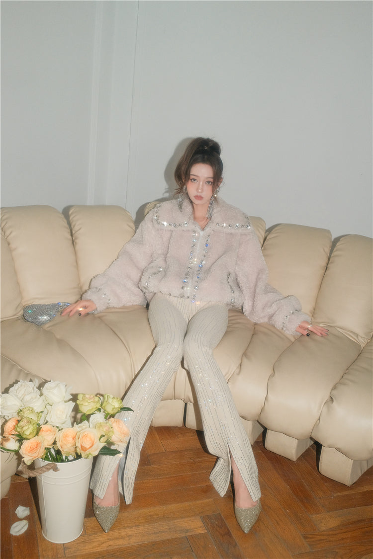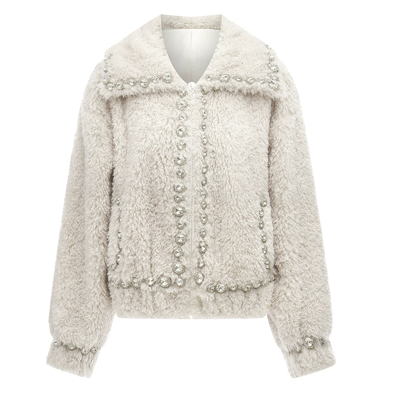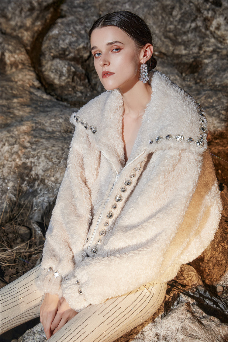 Ward Robe By Chen Beige V-Neck Long Sleeve Medium Wool Coat-Chen