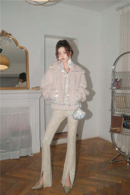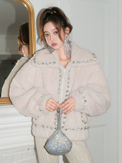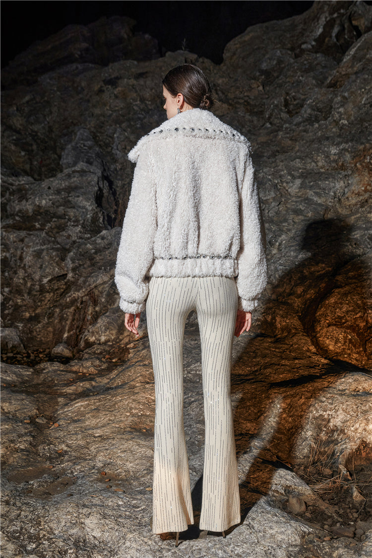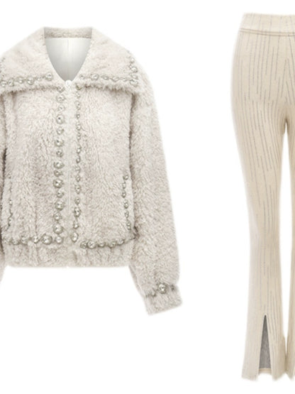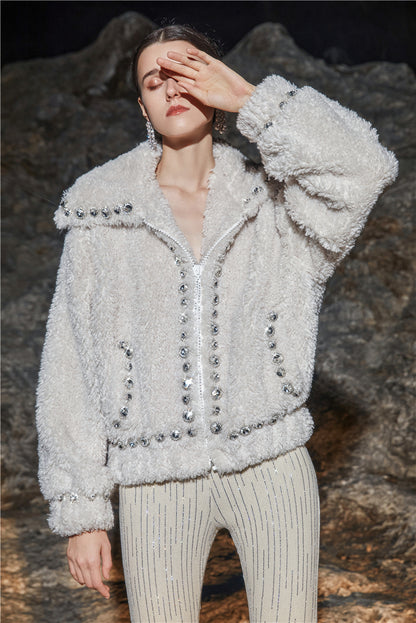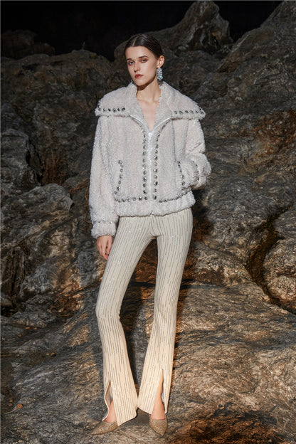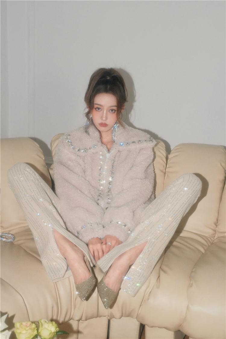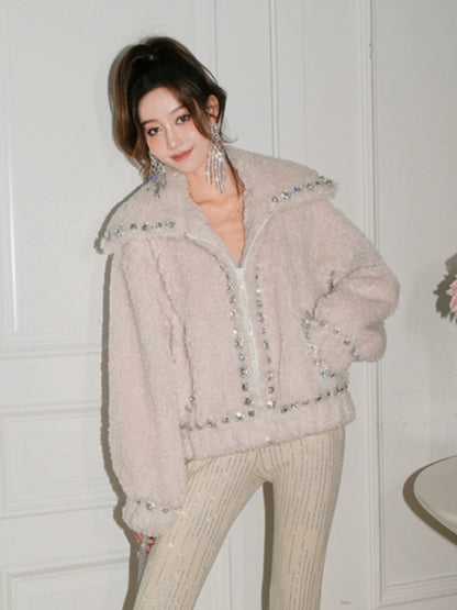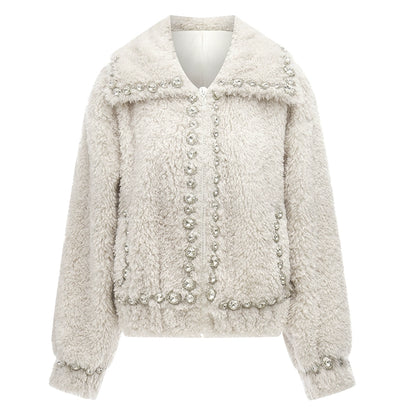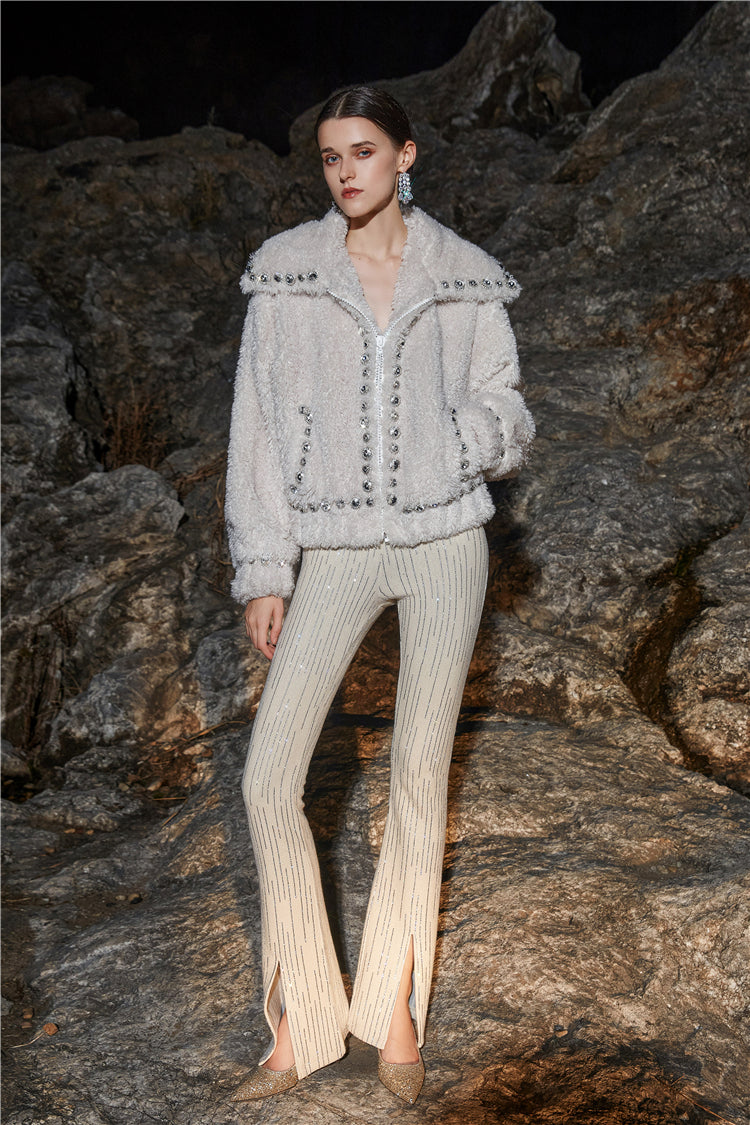 Ward Robe By Chen Beige V-Neck Long Sleeve Medium Wool Coat-Chen