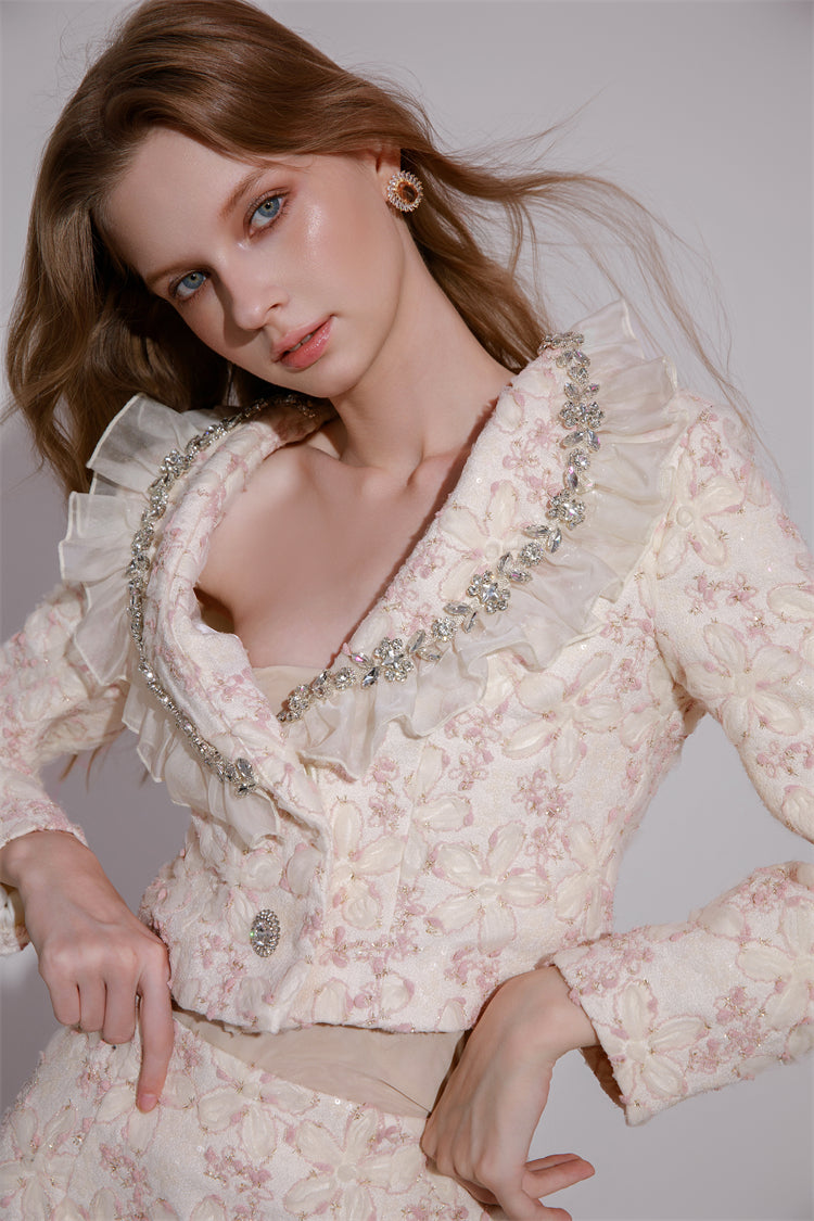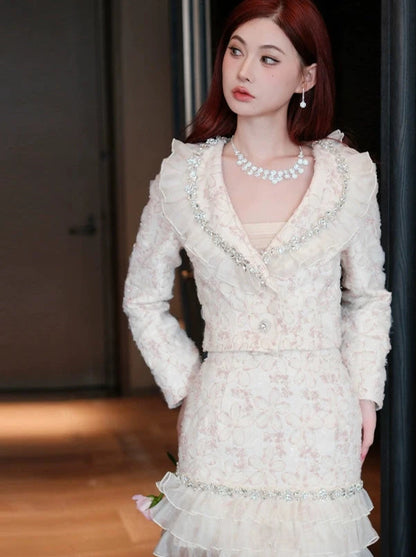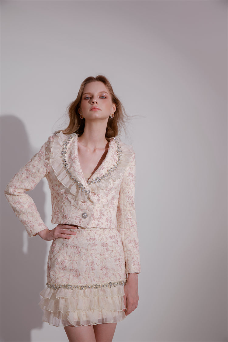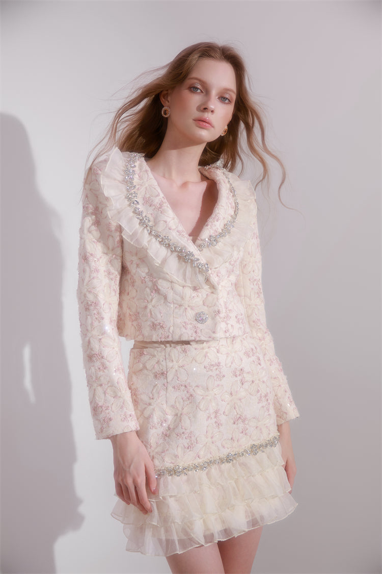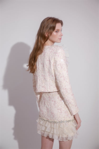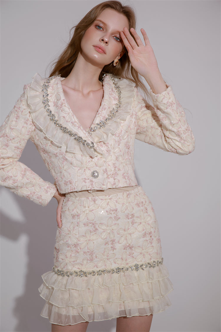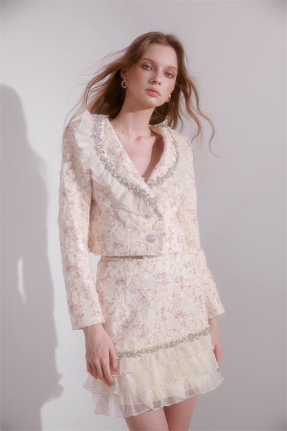 Wardrobes by Chen Elegant Beige Long Sleeve Sequin Jacket/Short Skirt - Peggy
