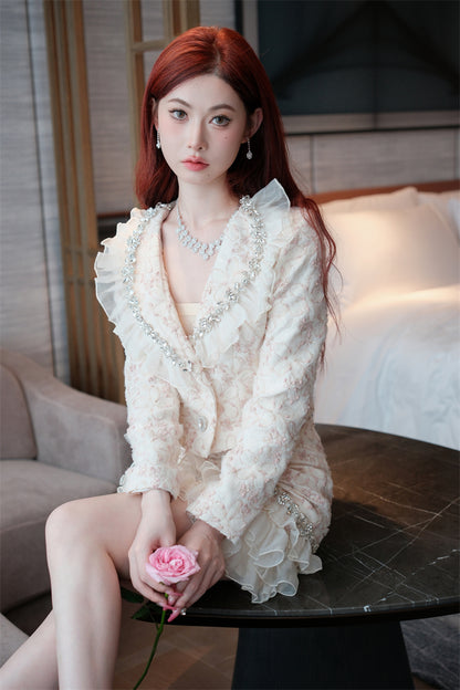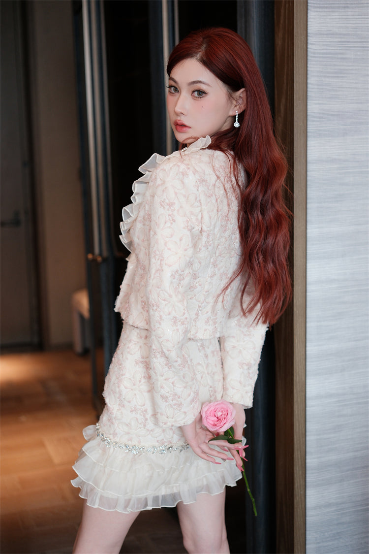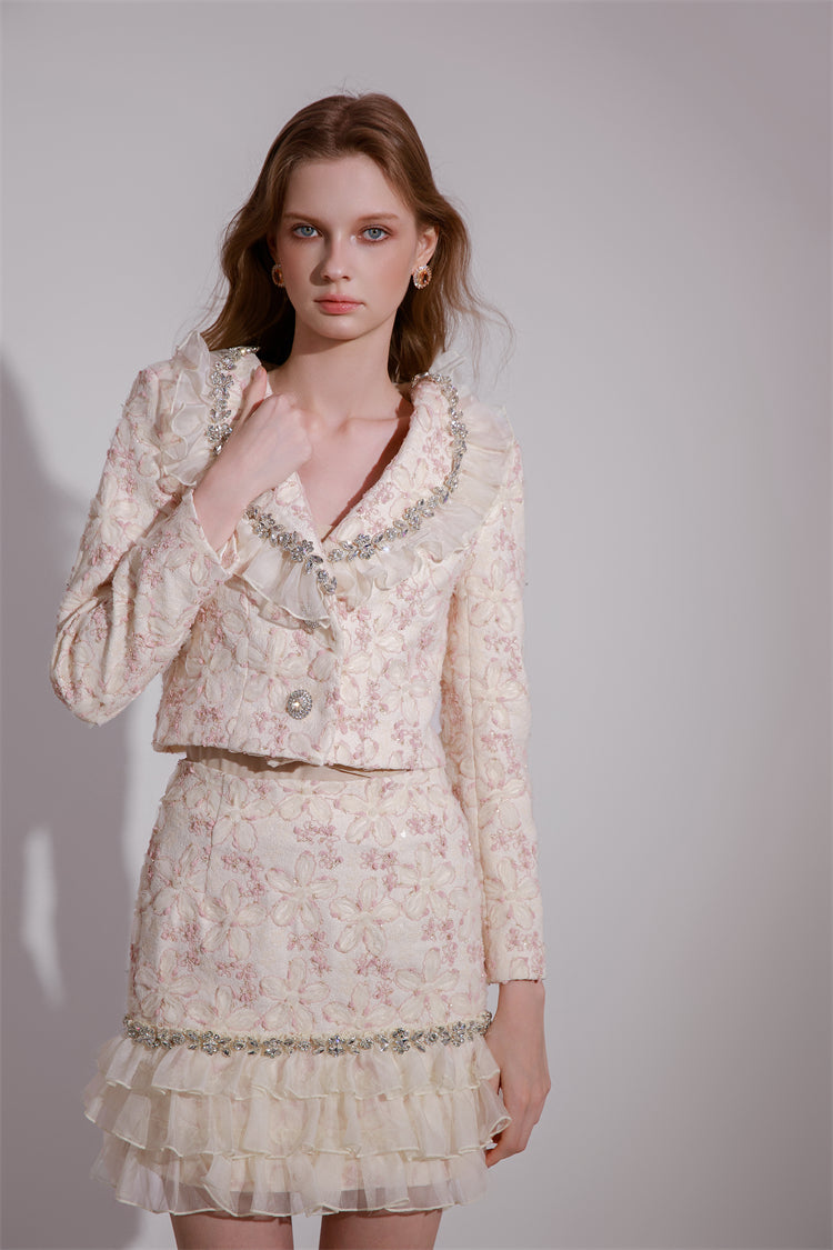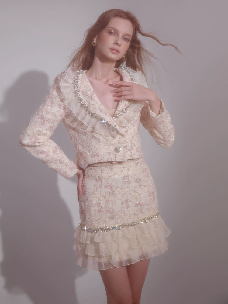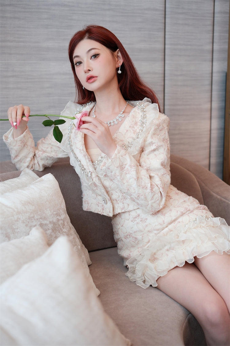 Wardrobes by Chen Elegant Beige Long Sleeve Sequin Jacket/Short Skirt - Peggy