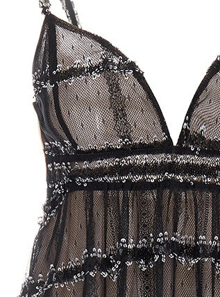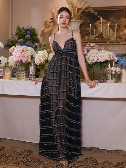 Wardrobes by Chen Elegant Black Retro V-Neck Long Sequin Resort Dress-Shen