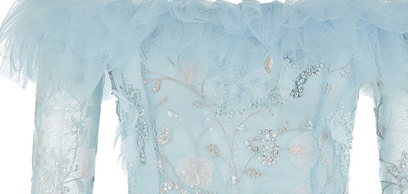 Indulge in luxury with our Wardrobes by Chen Elegant Blue Off Shoulder Frills Long Sleeve Short Dress. Adorned with beautiful frills and featuring a flattering off shoulder design, this dress combines elegance with style. Be the center of attention at any event and make a statement with this exquisite piece.