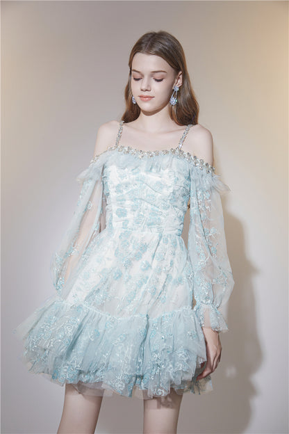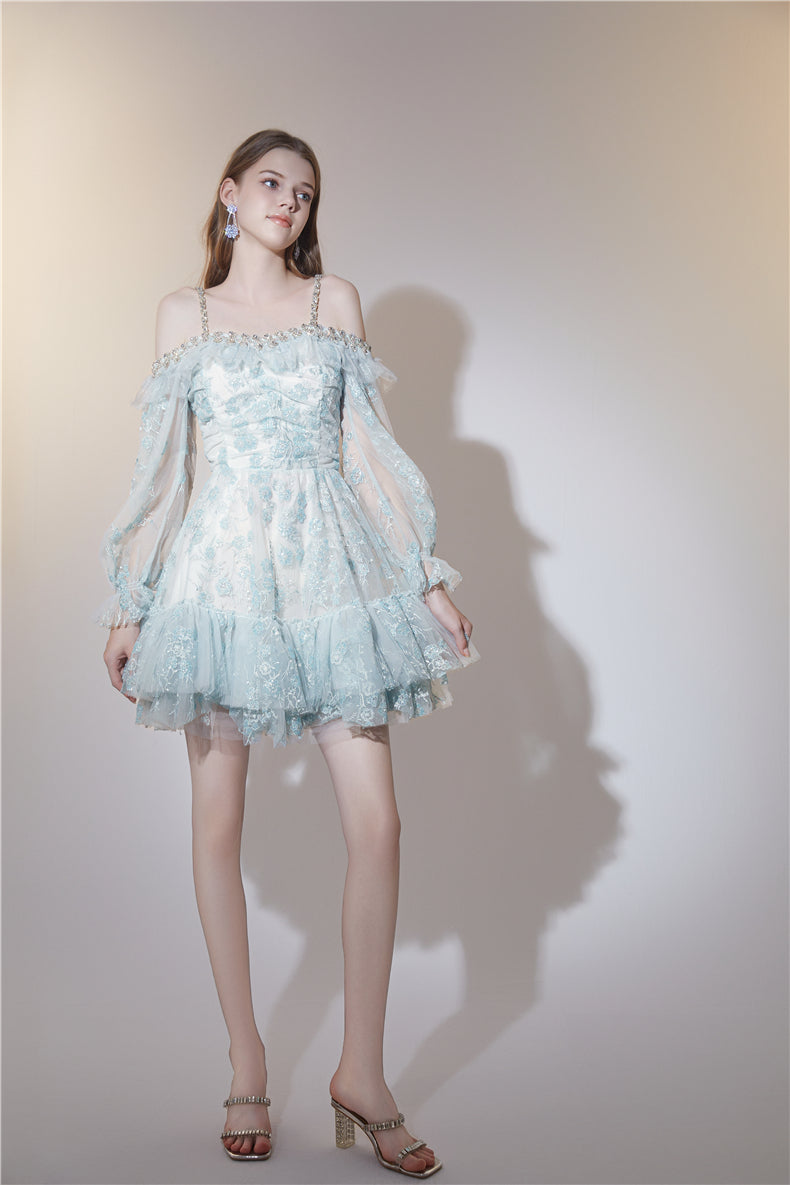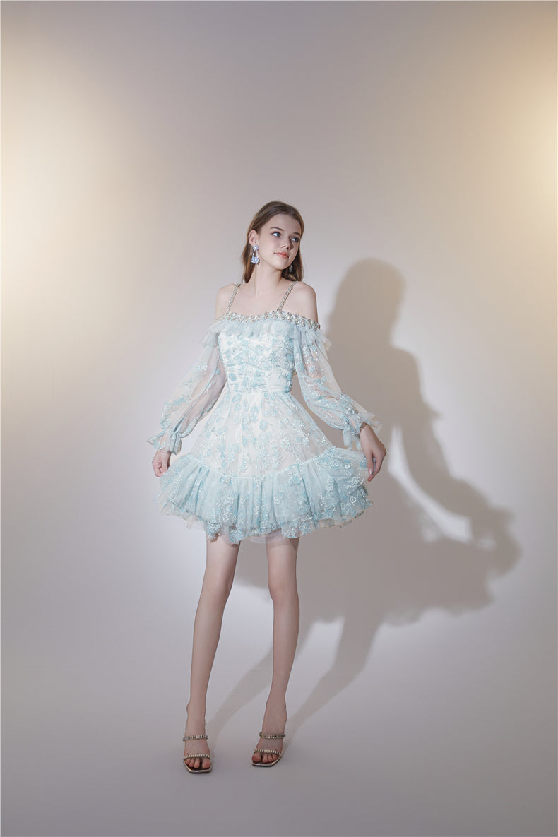 Wardrobes by Chen Elegant Embroidery Long Sleeve Short Party Dress- Larry