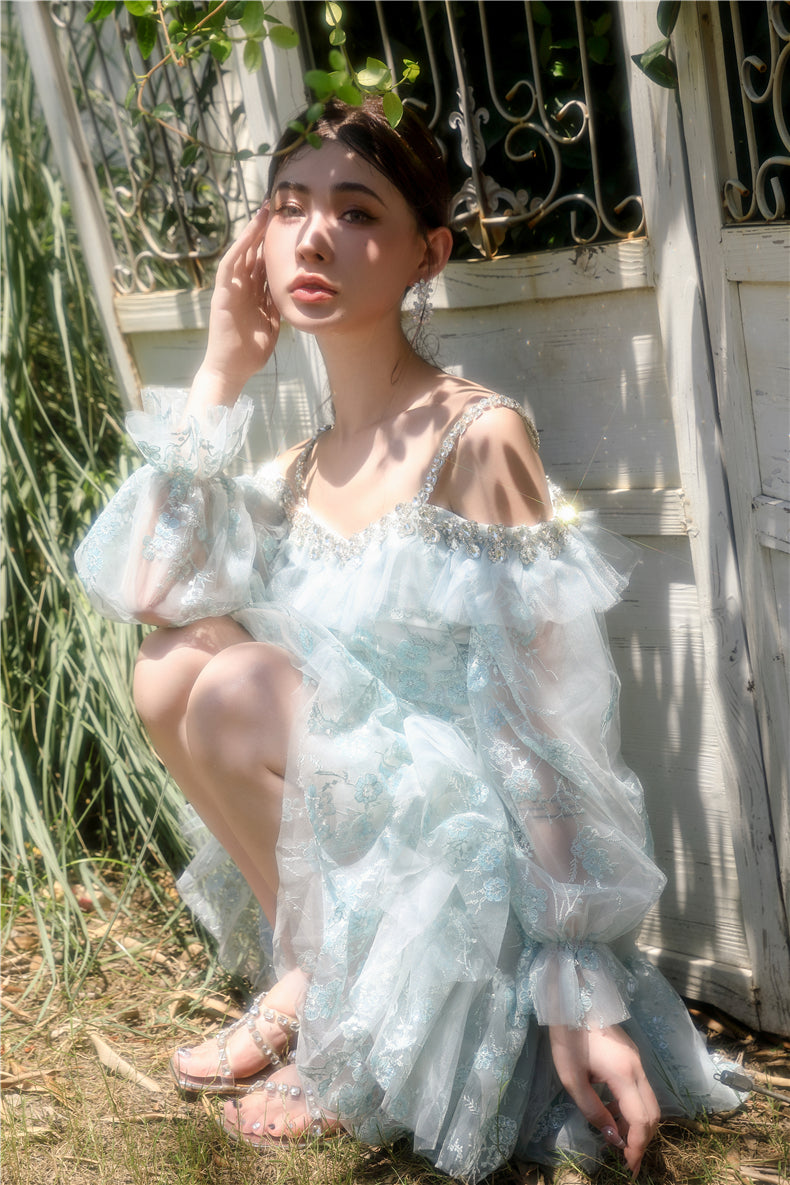 Indulge in sophistication with Wardrobes by Chen Elegant Embroidery Dress. The intricate embroidery and long sleeves exude elegance, perfect for any occasion. This short dress elevates your style to a whole new level, making you feel like a work of art.