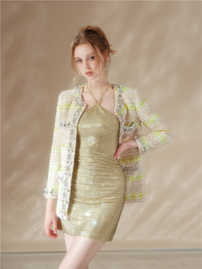 Wardrobes by Chen Elegant Long Sleeve Diamond Short Jacket/Slim Fit Dress-Bella