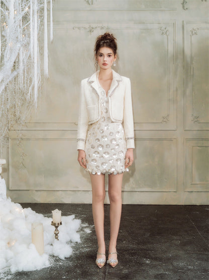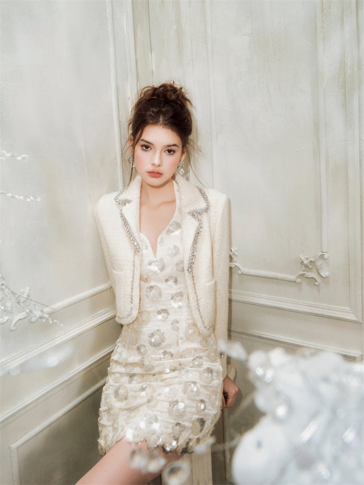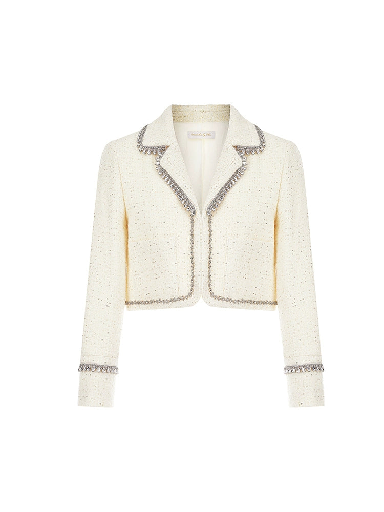 Wardrobes By Chen Elegant Off White Long Sleeve Short Jacket-Ama