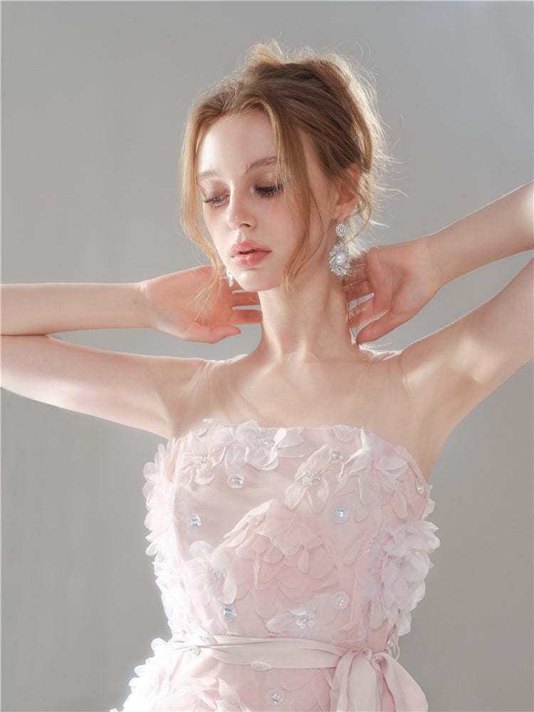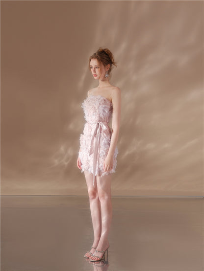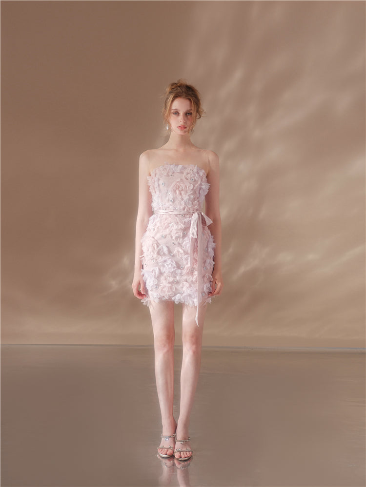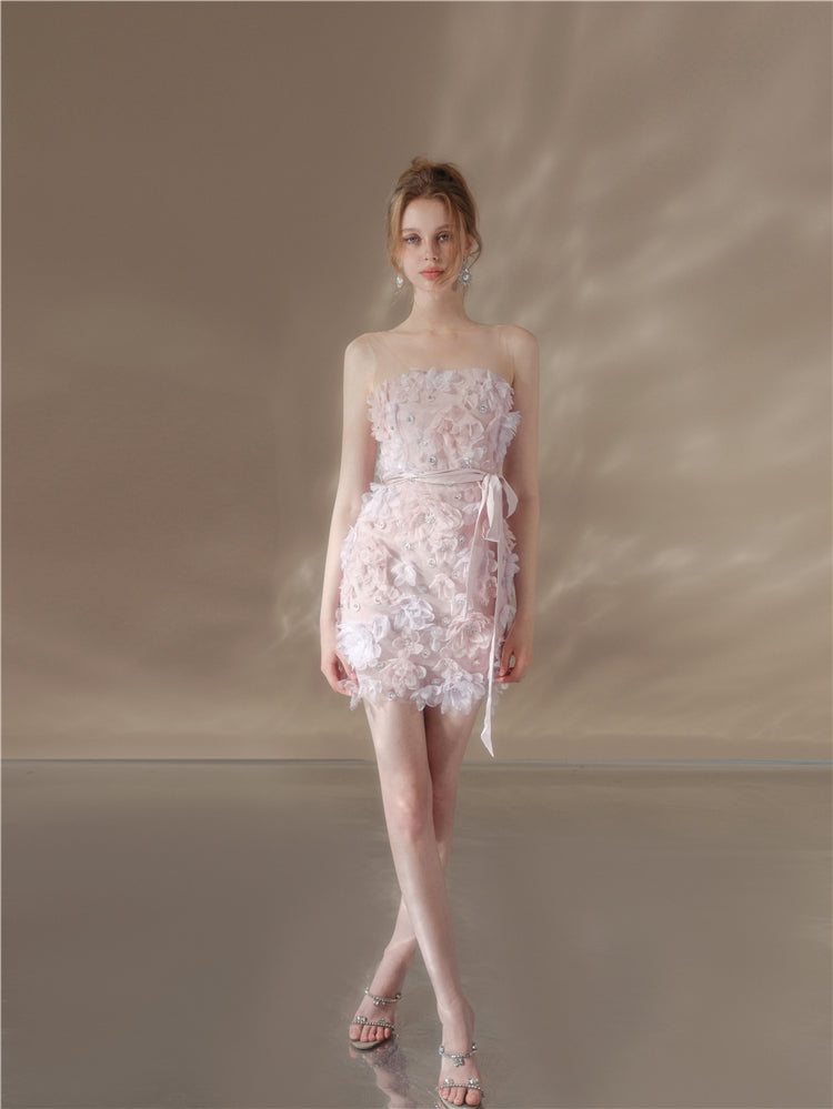 Wardrobes by Chen Elegant Pink Sleeveless Floral Short Dinner Dress-Sheila