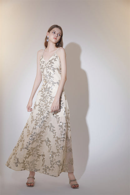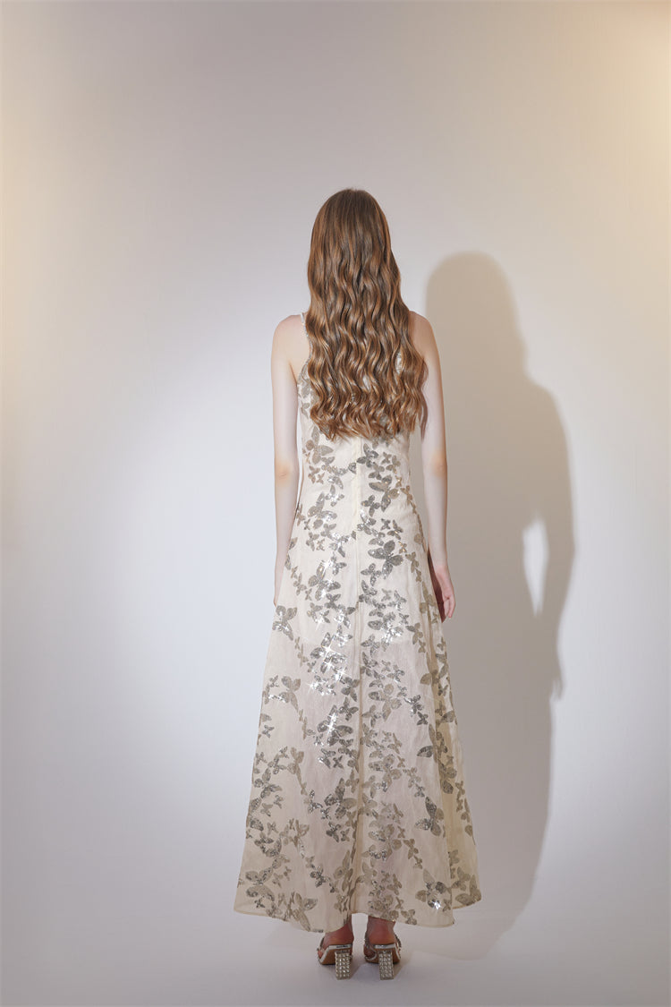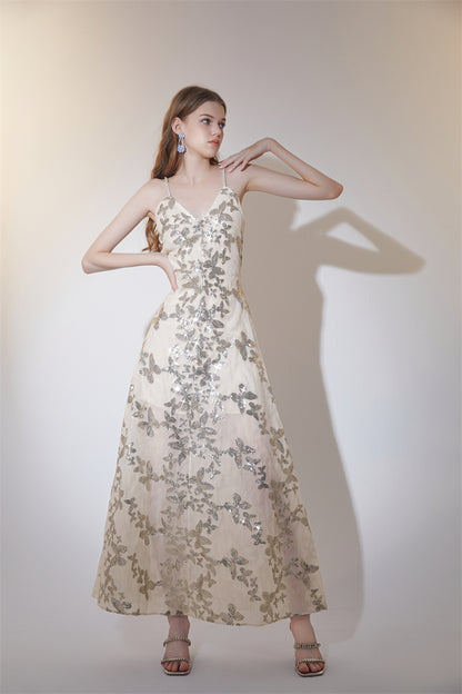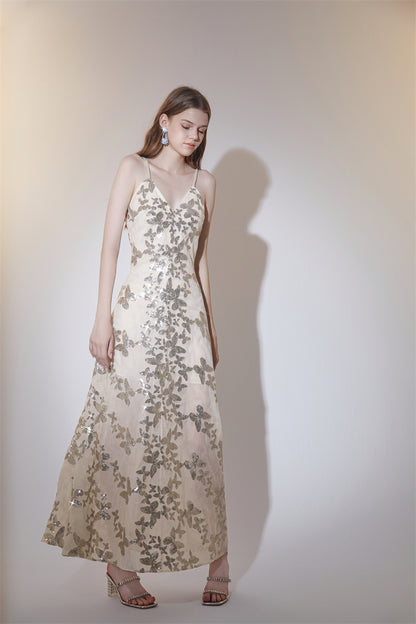 Wardrobes by Chen Elegant V-Neck Sleeveless Sequin Embroidery Long Dress-CARRIE