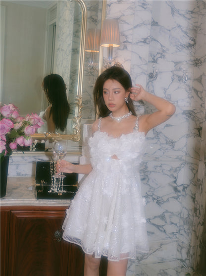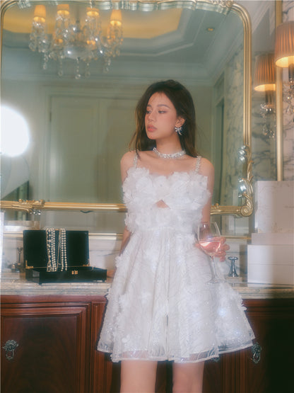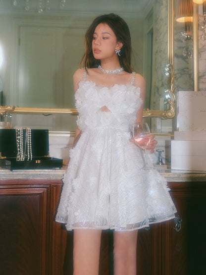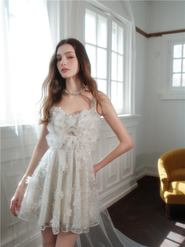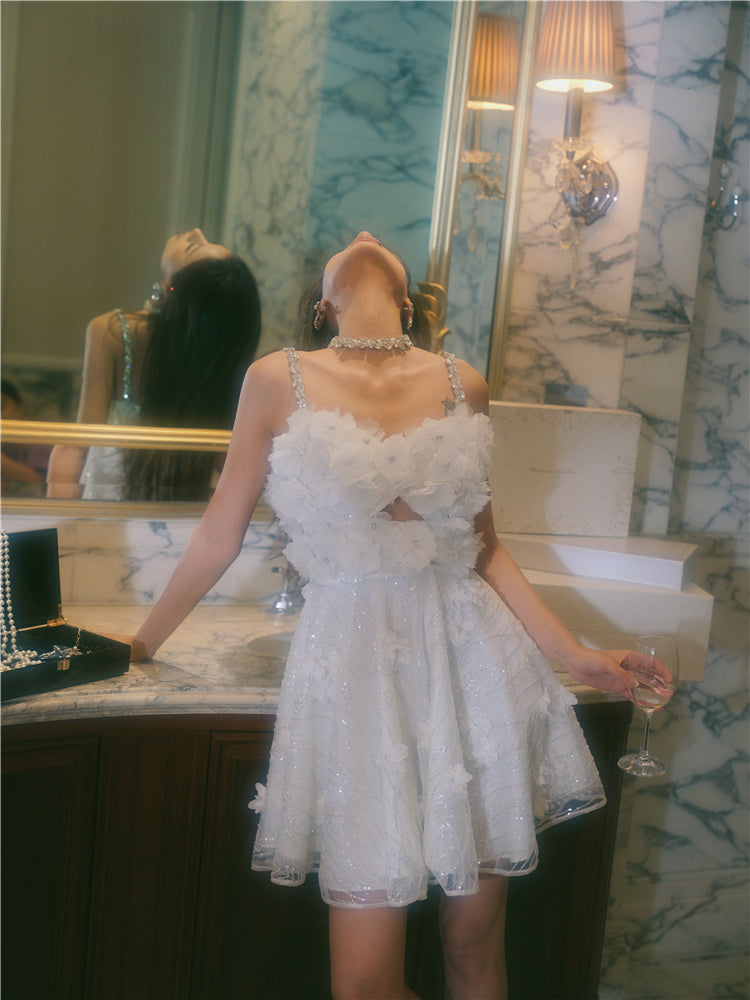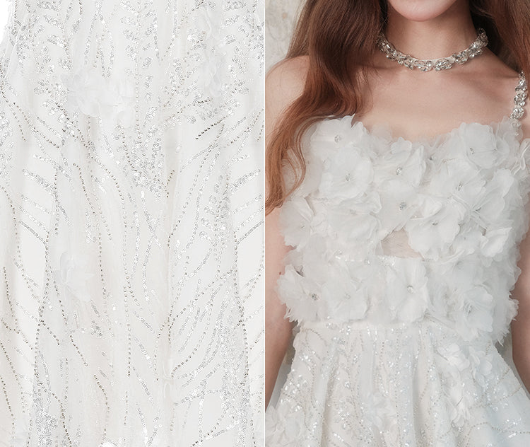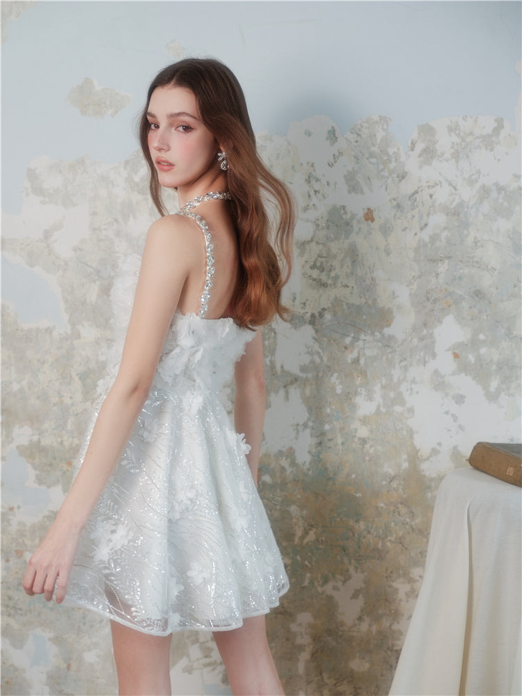 Wardrobes by Chen Elegant White Sleeveless Diamond Sequin Floral Dress-Ona