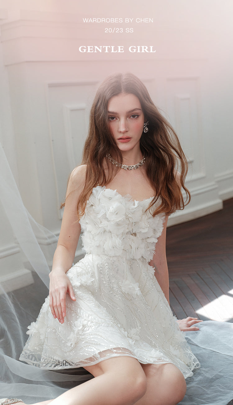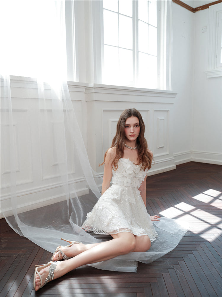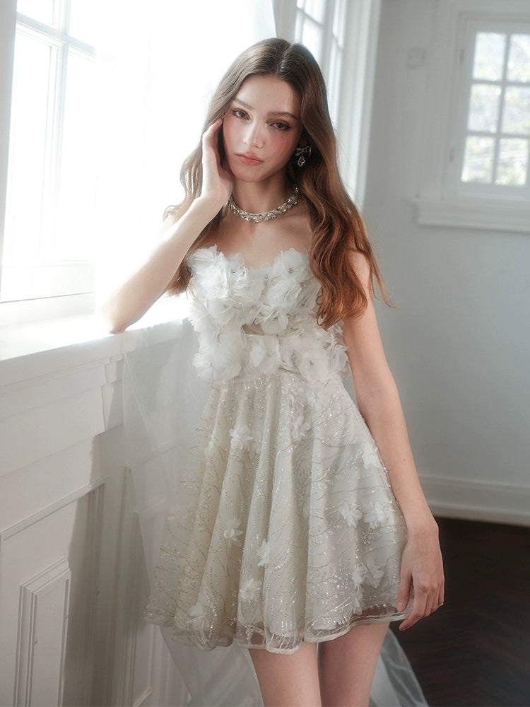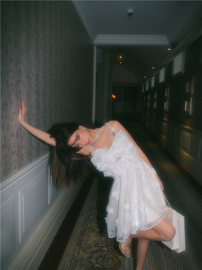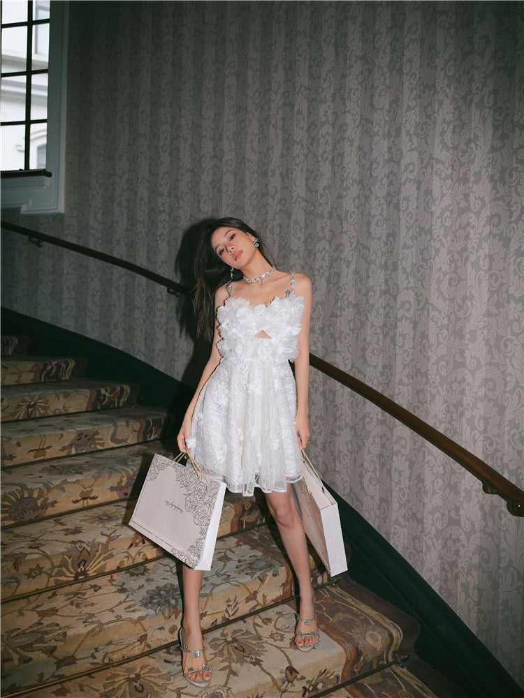 Wardrobes by Chen Elegant White Sleeveless Diamond Sequin Floral Dress-Ona