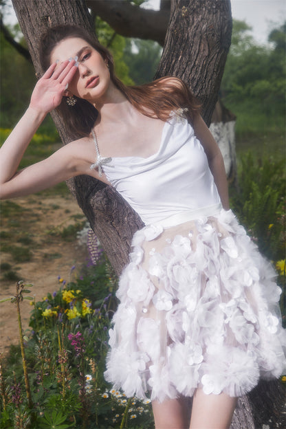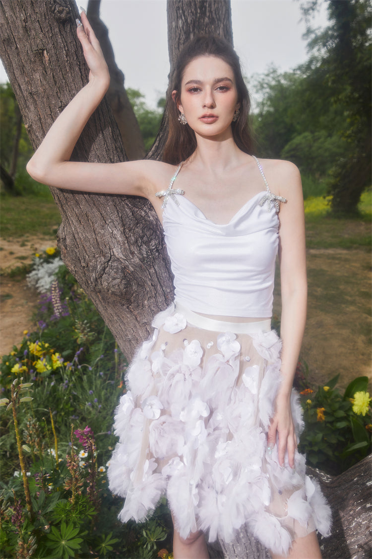 Indulge in luxury with our elegant Wardrobes by Chen two piece outfit. The sleeveless white top and flower embroidered skirt exude sophistication, perfect for a classy and exclusive look. Elevate your style with these premium pieces.