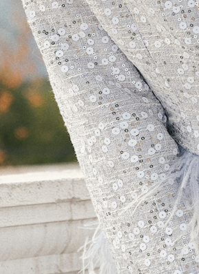 Wardrobes by Chen Gorgeous Fog Blue Embroidery Feather Tassel Suit-Moet