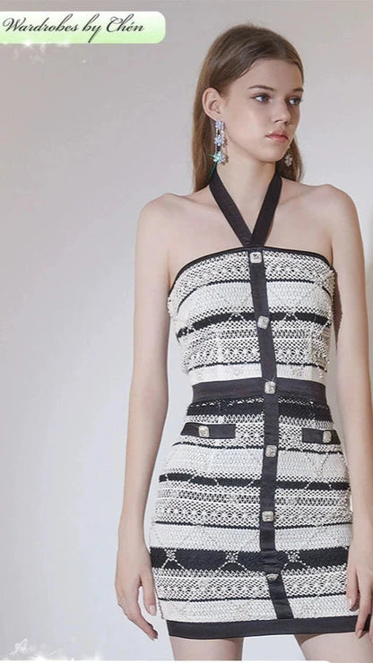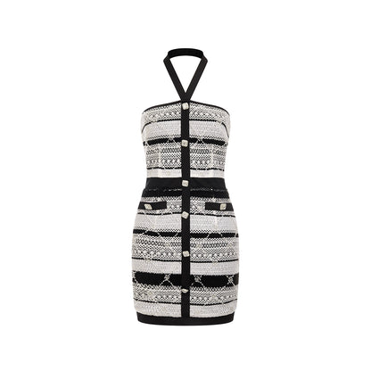 Wardrobes by Chen High End Diamond Halter Neck Short Knitted Party Dress-GERTY