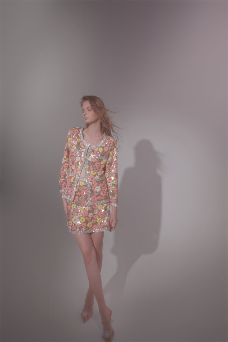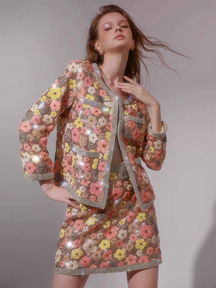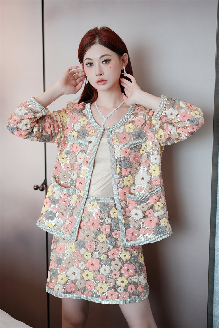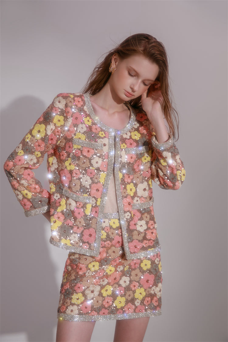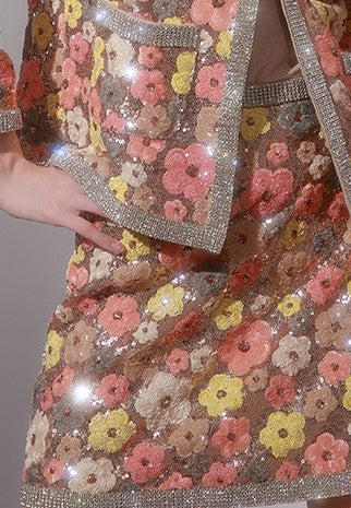 Wardrobes by Chen High End Diamond Sequin floral Jacket/Short Skirt- Candace
