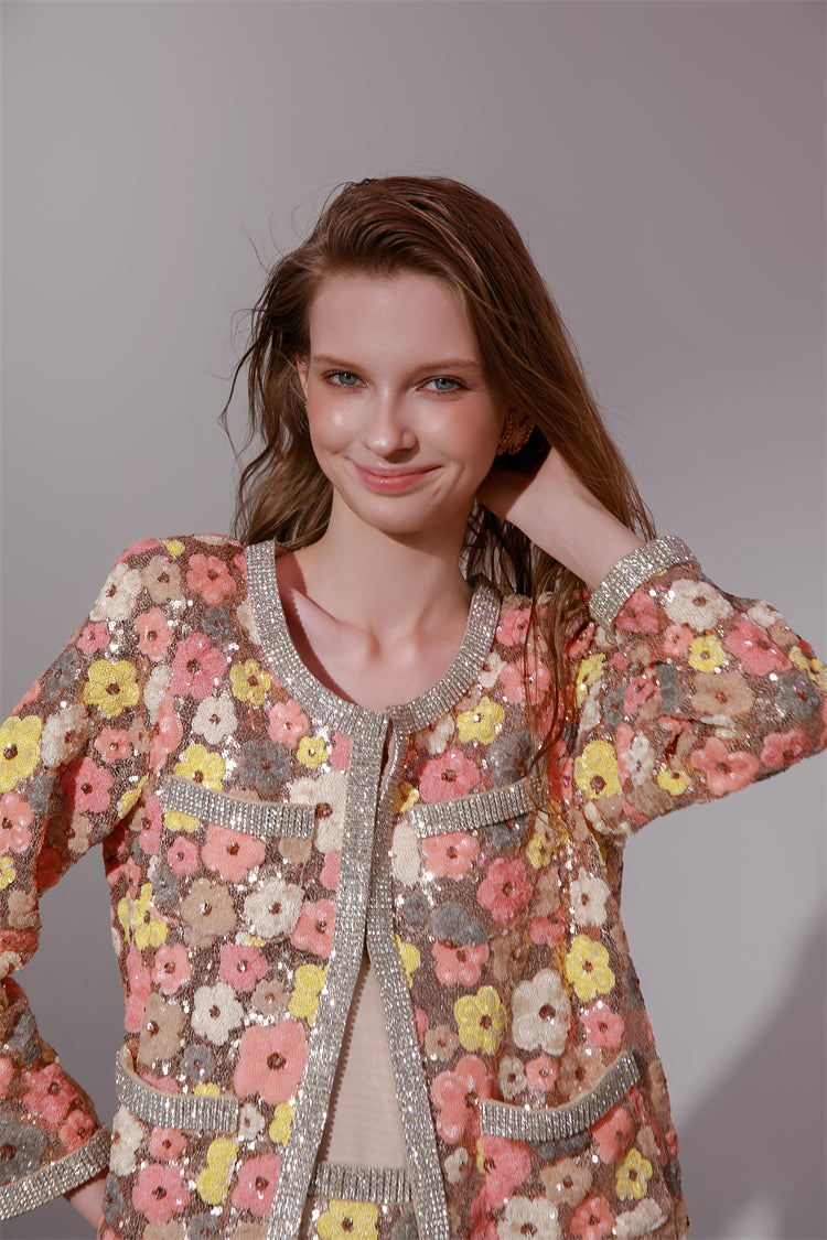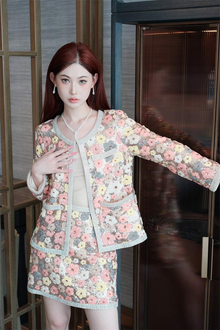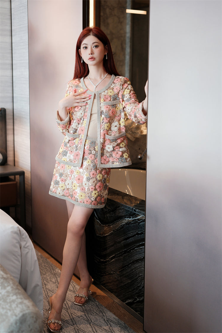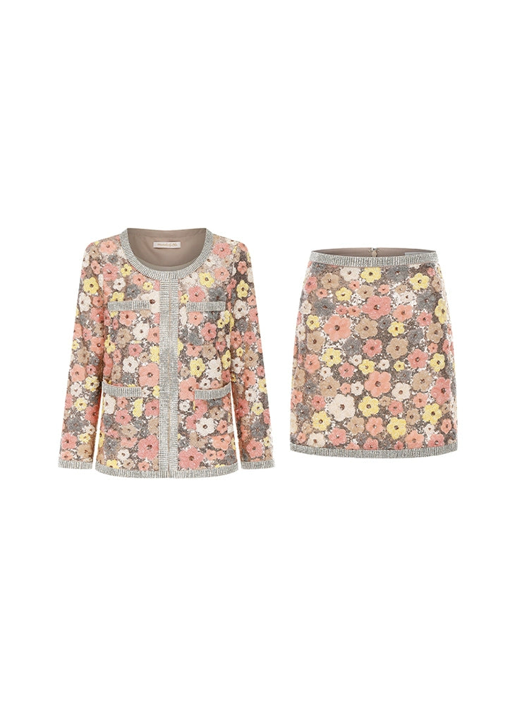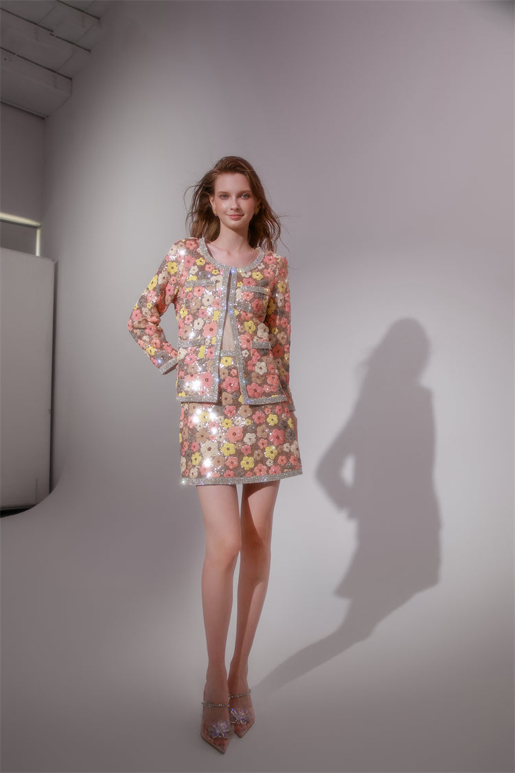 Wardrobes by Chen High End Diamond Sequin floral Jacket/Short Skirt- Candace