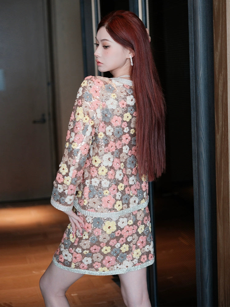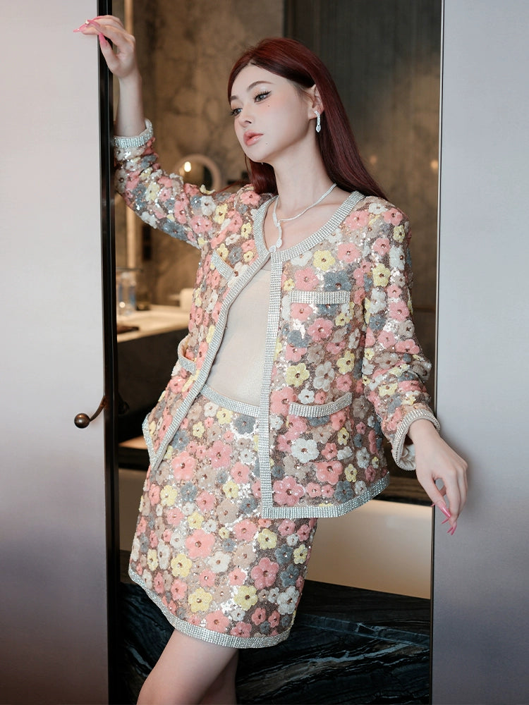 Transform your wardrobe with our Wardrobes by Chen High End Diamond Sequin Flowery Jacket/Short Skirt-Tisha. This elegant, classy, and chic outfit exudes luxury and sophistication, perfect for any formal occasion. Elevate your style with intricate sequin details and look effortlessly stylish in this exclusive piece.(v)