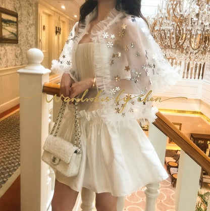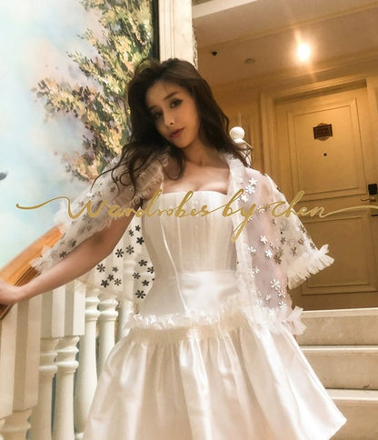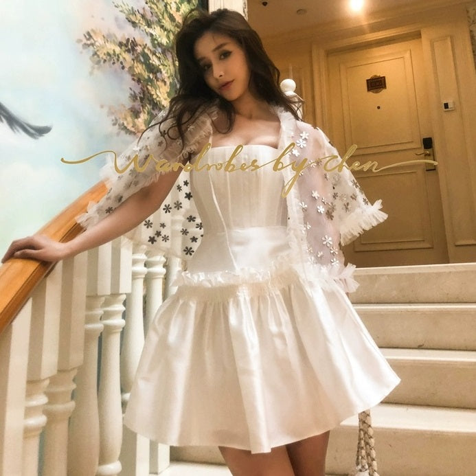 Wardrobes by Chen High End White strapless Puffy short bridal Dress-ROCKIE