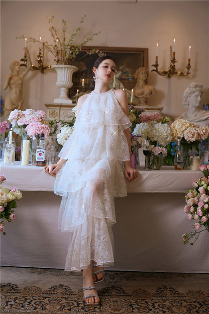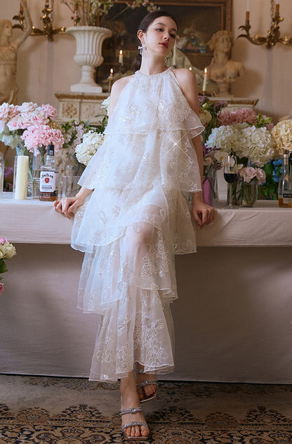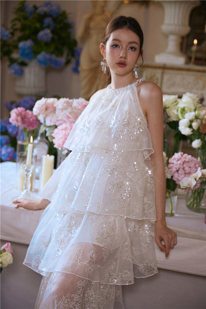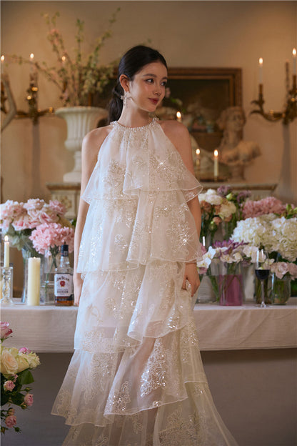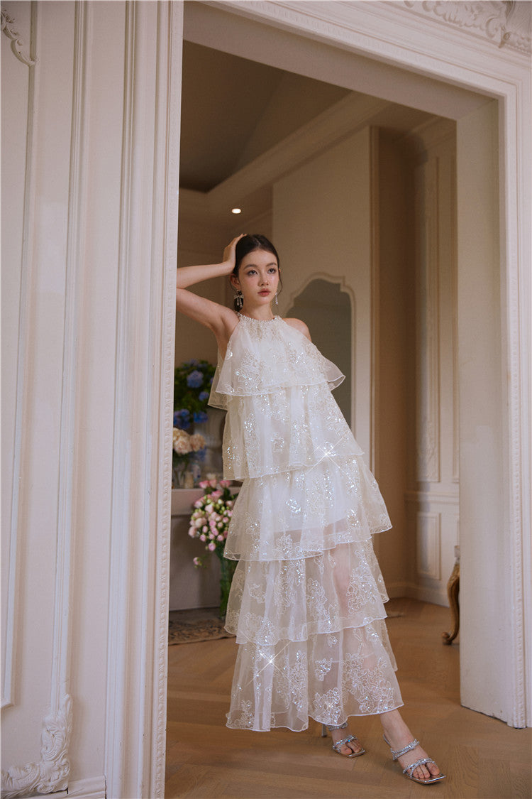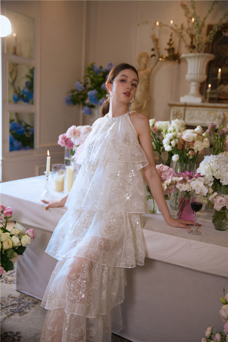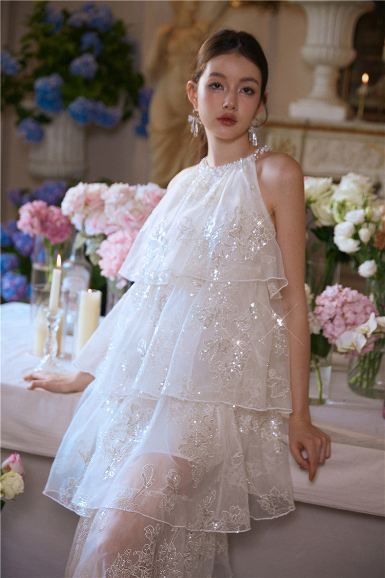 Wardrobes by Chen Luxury offwhite Sequin Halter Cake Dress -Seline
