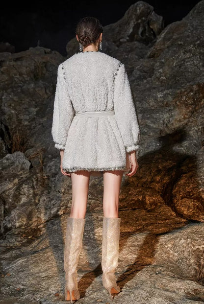 Wardrobes by Chen Luxury Beige V-Neck Long Sleeve Diamond Stud Coat-Joy