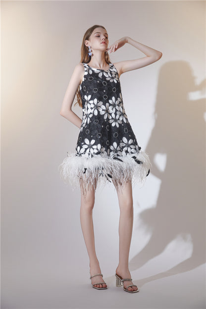 Elevate your wardrobe with Wardrobes by Chen Luxury. The stunning Black and White Flower Embroidered Lace Date Dress is a beautiful addition to your collection. Embrace elegance and sophistication with this exquisite piece, perfect for any special occasion.