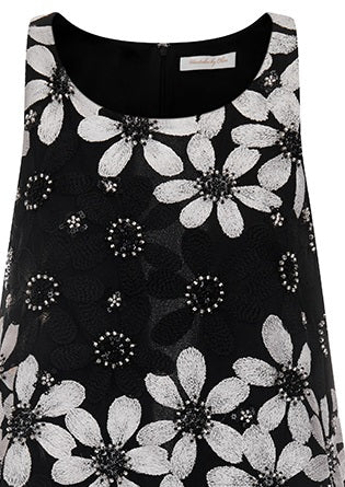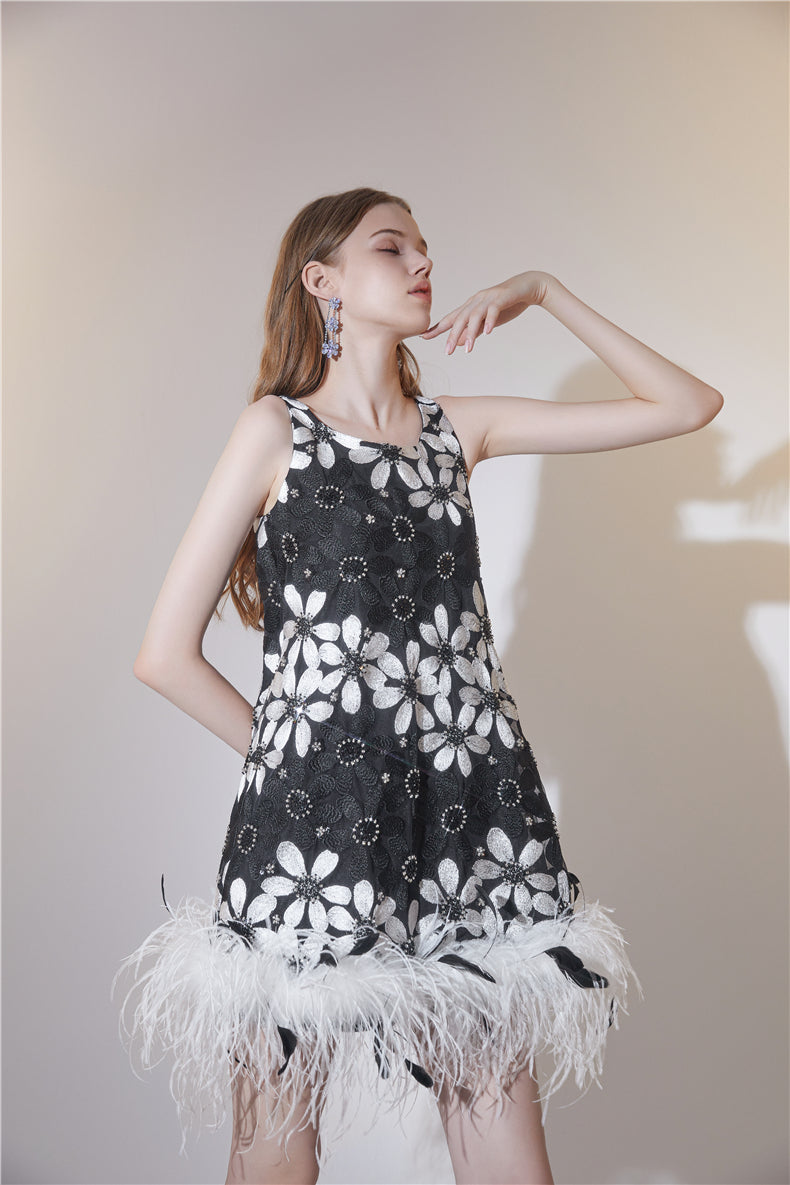 Wardrobes by Chen Luxury Black and White Flower Embroidered Dress-PAOLA