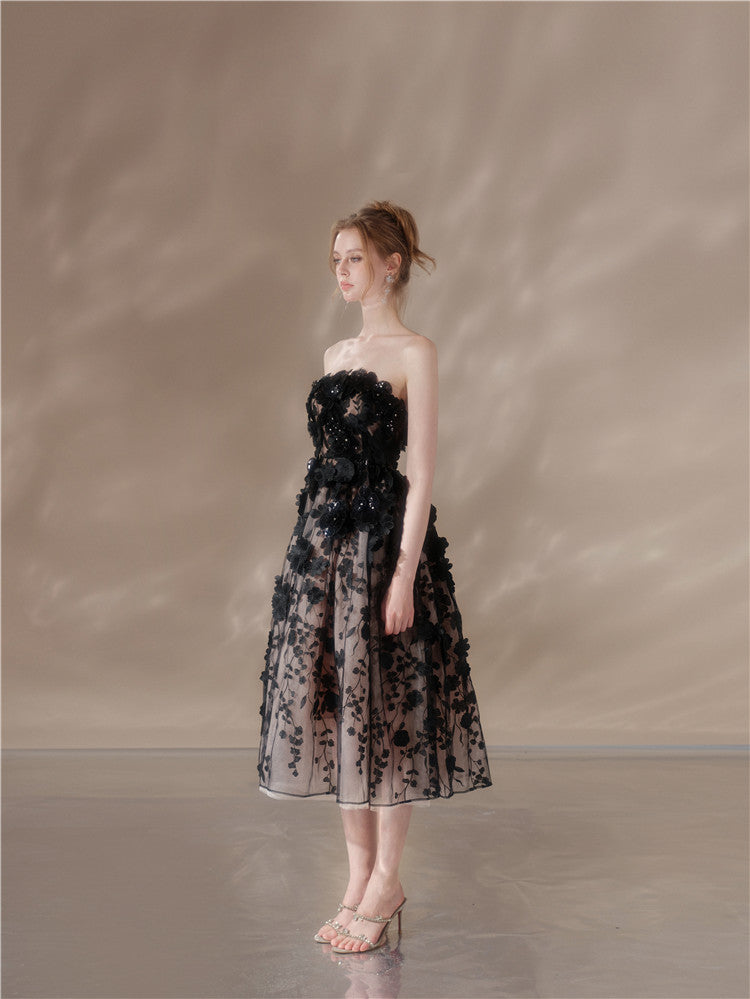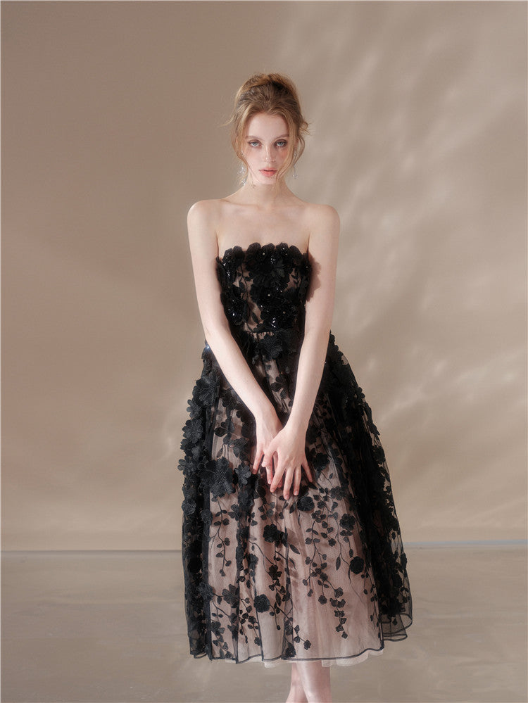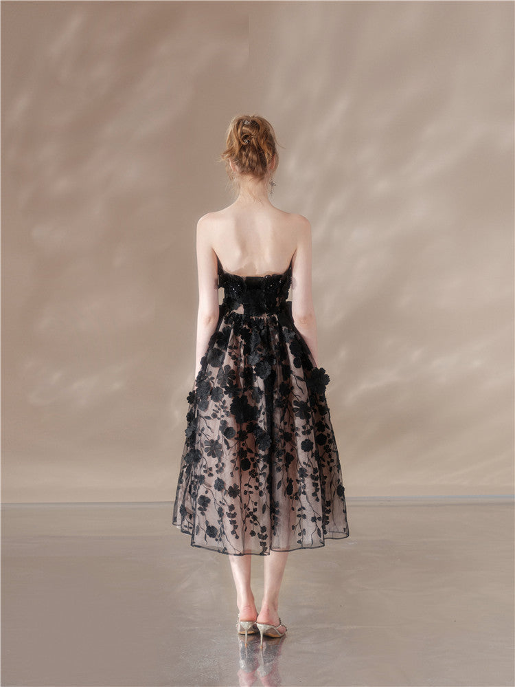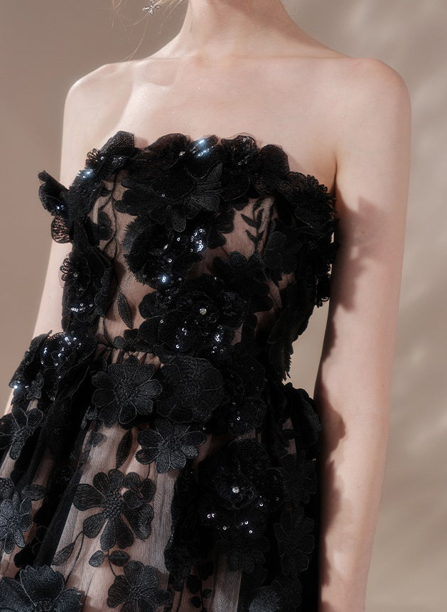 Wardrobes by Chen Luxury Black strapless Floral Hepburn style cocktail evening Dress-Blackie