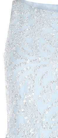 Enhance your elegance with our Chen Luxury Wardrobe. This blue sleeveless dress features a feather, sequin, and tassel design that exudes class and sophistication. Perfect for making a statement at any event.