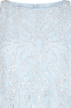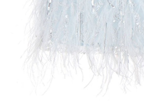 Wardrobes by Chen Luxury Blue Sleeveless Feather Sequin Tassel Short Dress-Tega