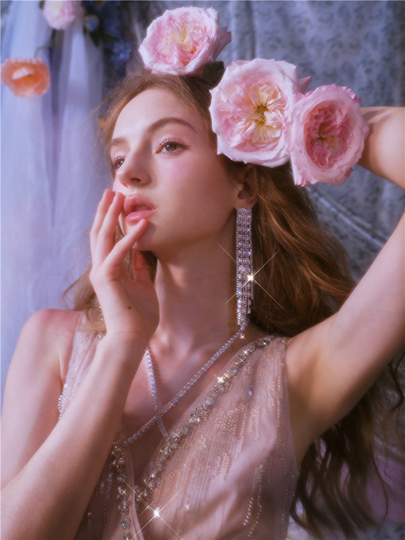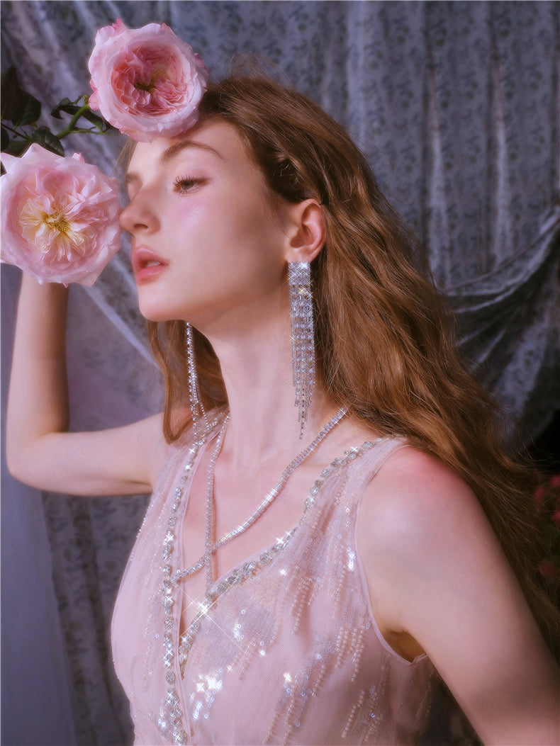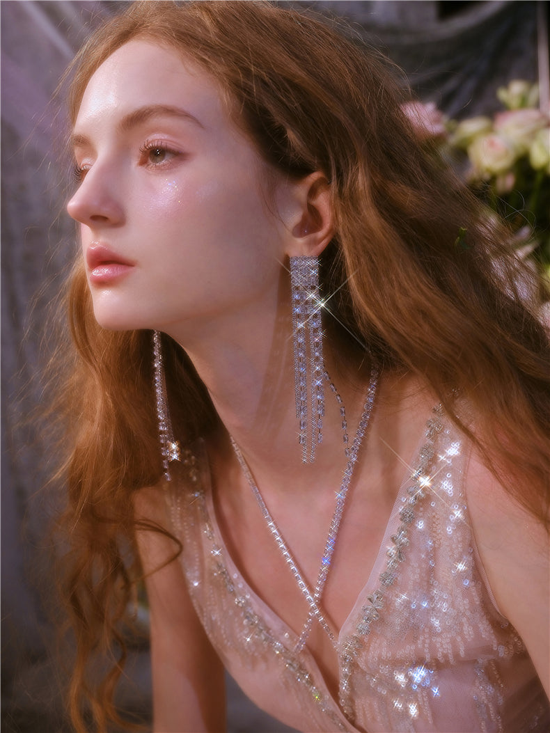 Sort by color: Irregular diamond tassel earrings, luxurious diamond-studded.