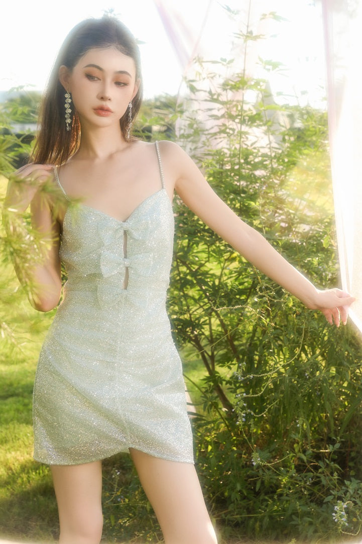 Wardrobes by Chen Luxury Bow mint green Sequin Sleeveless Short party Dress-BANA