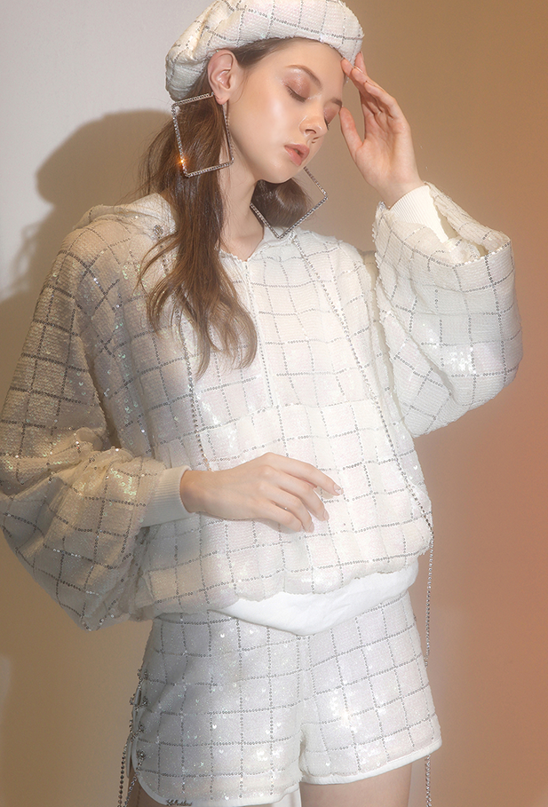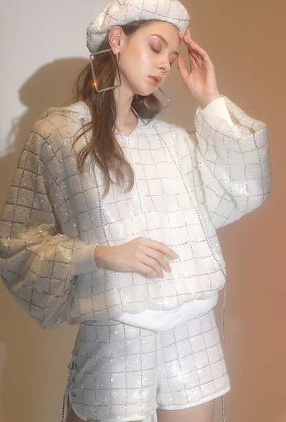 Wardrobes By Chen Luxury Checkered Diamond Chain Hooded Sweatshirt/Shorts-Atah