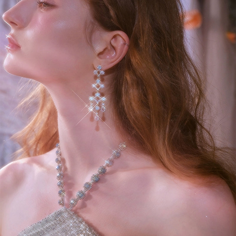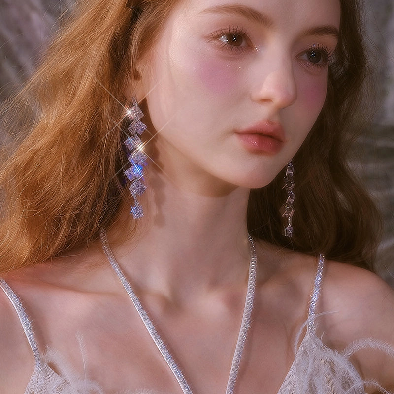Wardrobes by Chen Luxury Diamond Drop Pendant Tassel earrings Earrings-Treasure