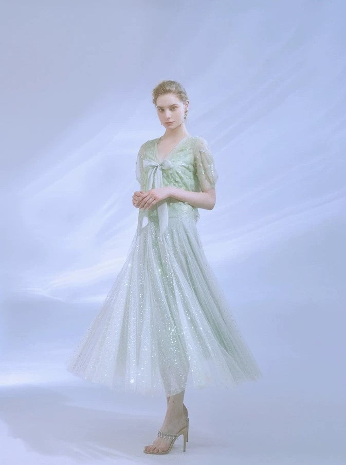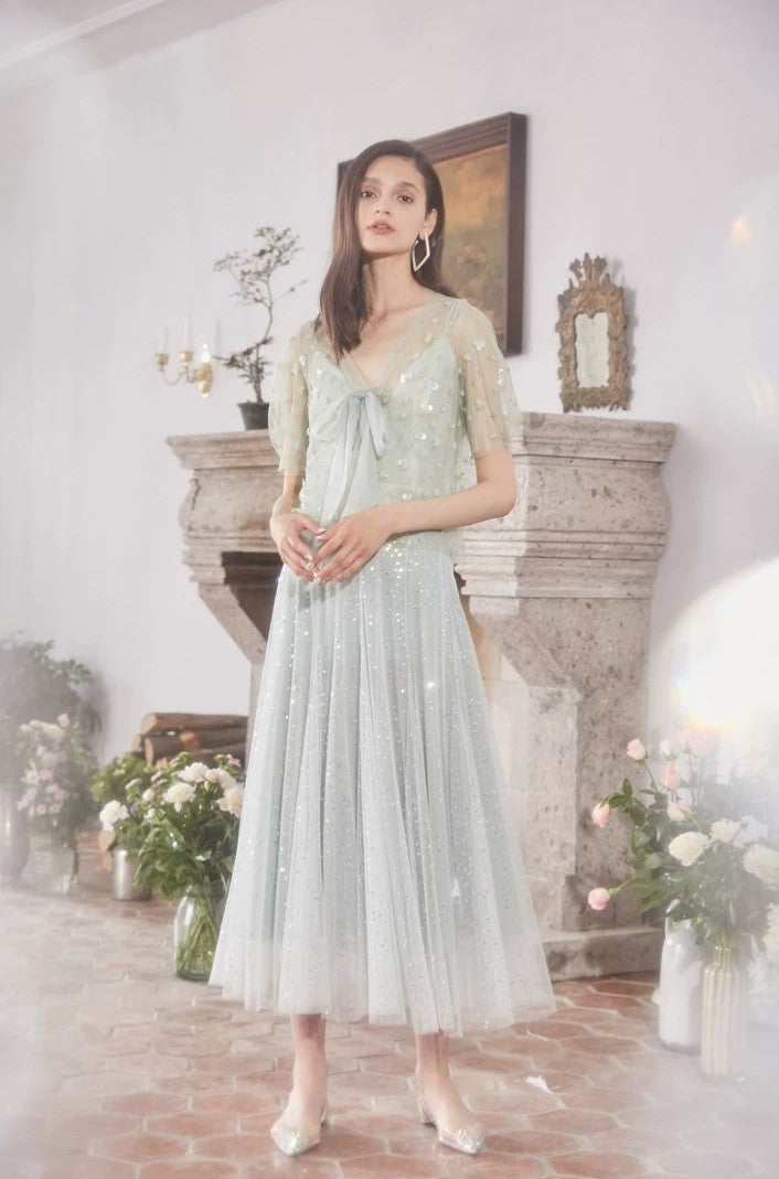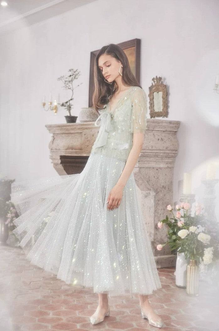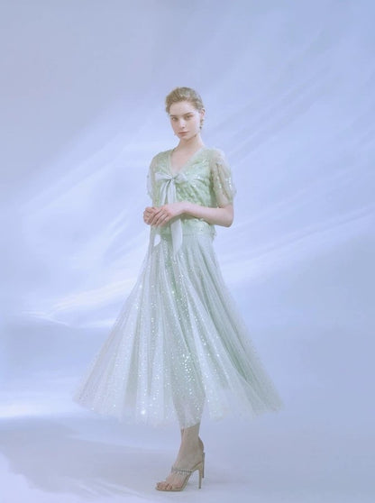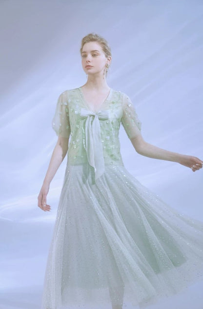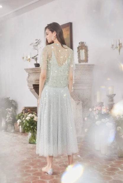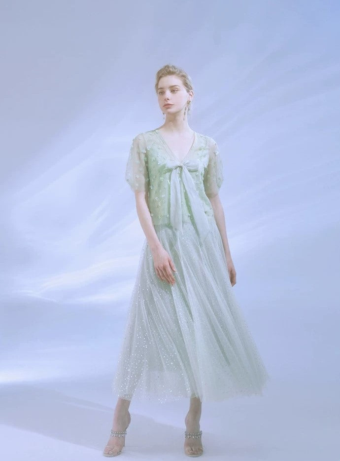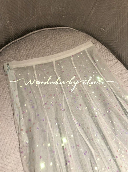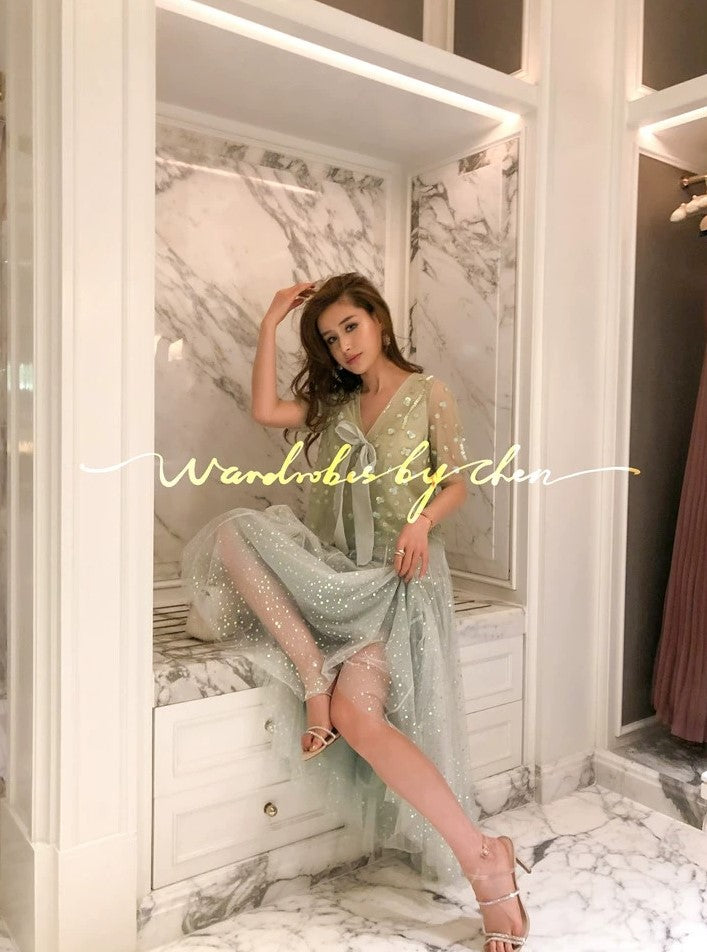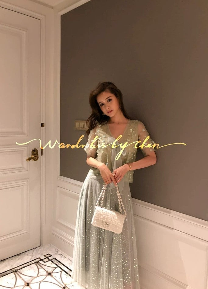 Wardrobes by Chen Luxury Flower Beaded Chiffon Top + Long Skirt-KIKI