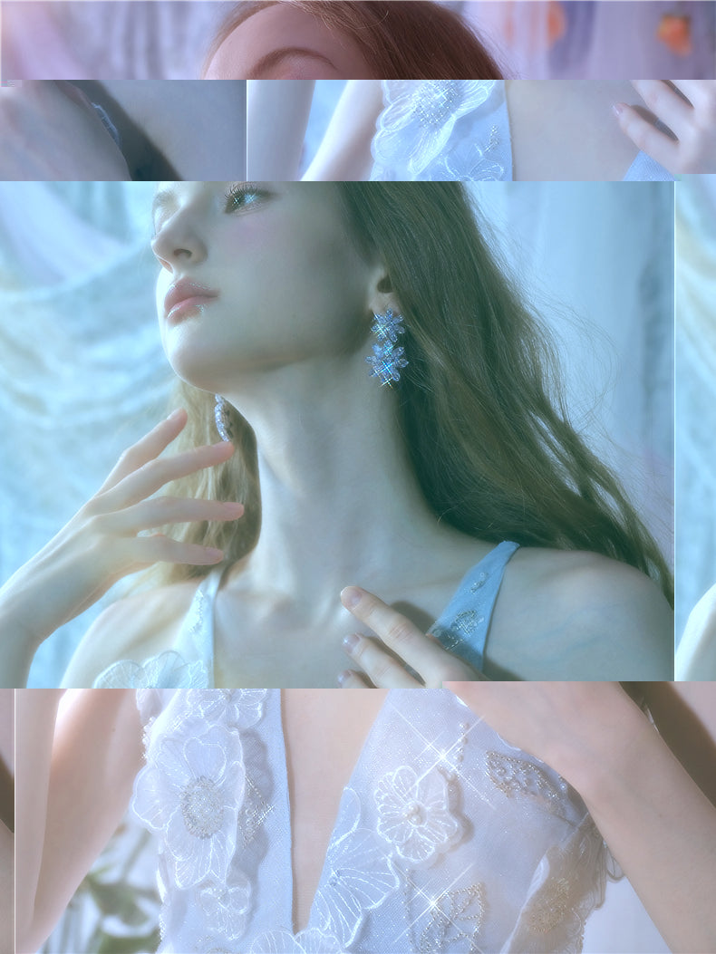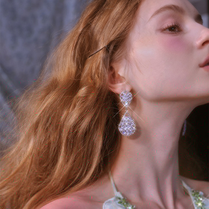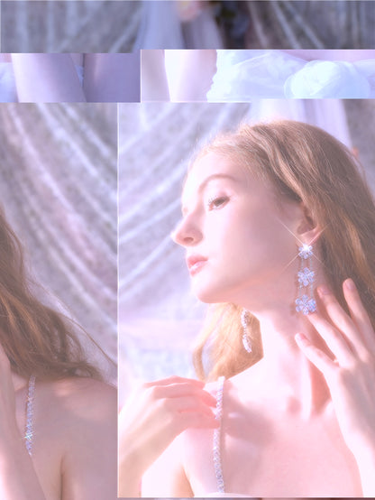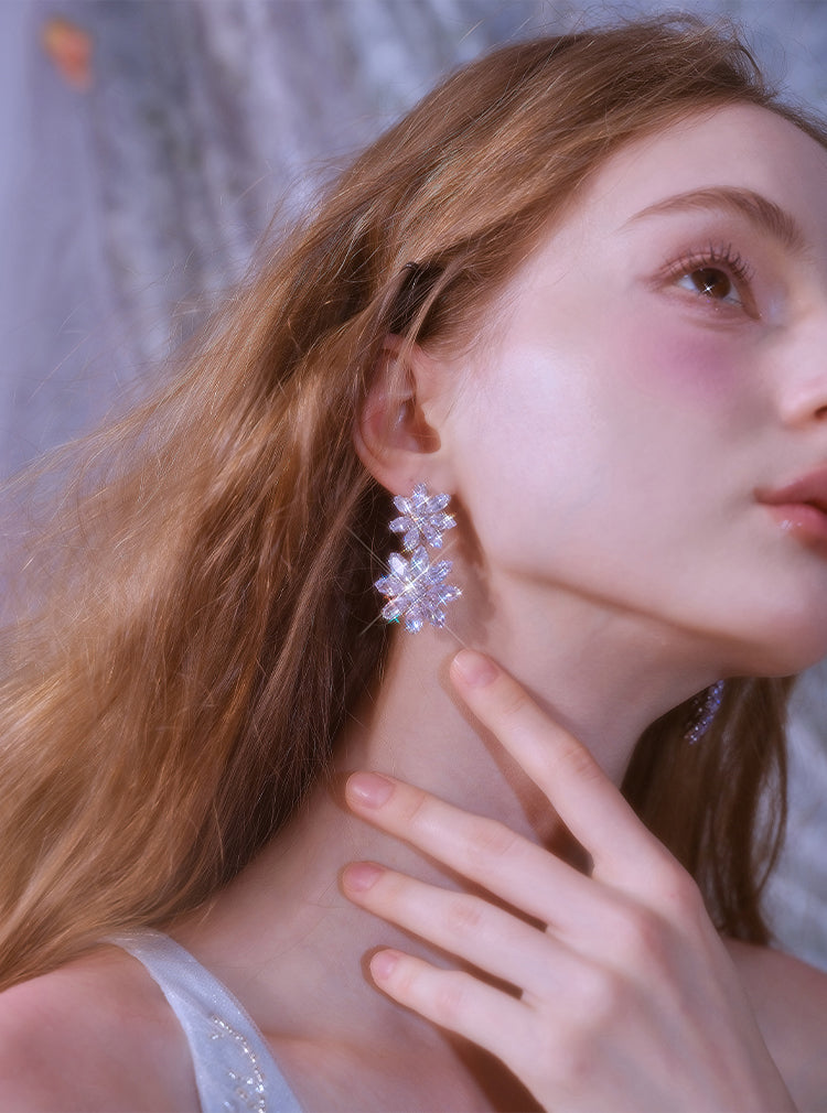 Color classification: light luxury flower diamond earrings, twin chain flower zircon earrings, micro-inlaid zircon flower chain earrings, large water drop earrings zircon earrings
