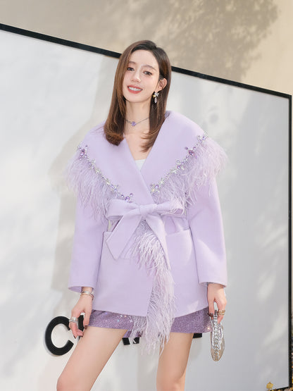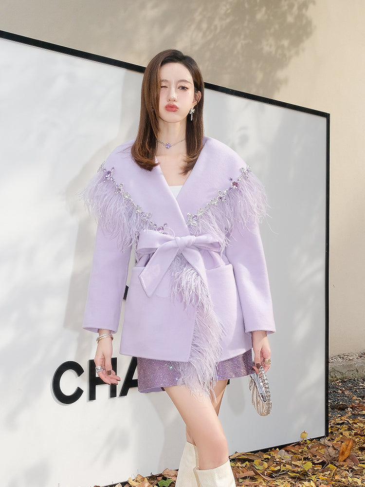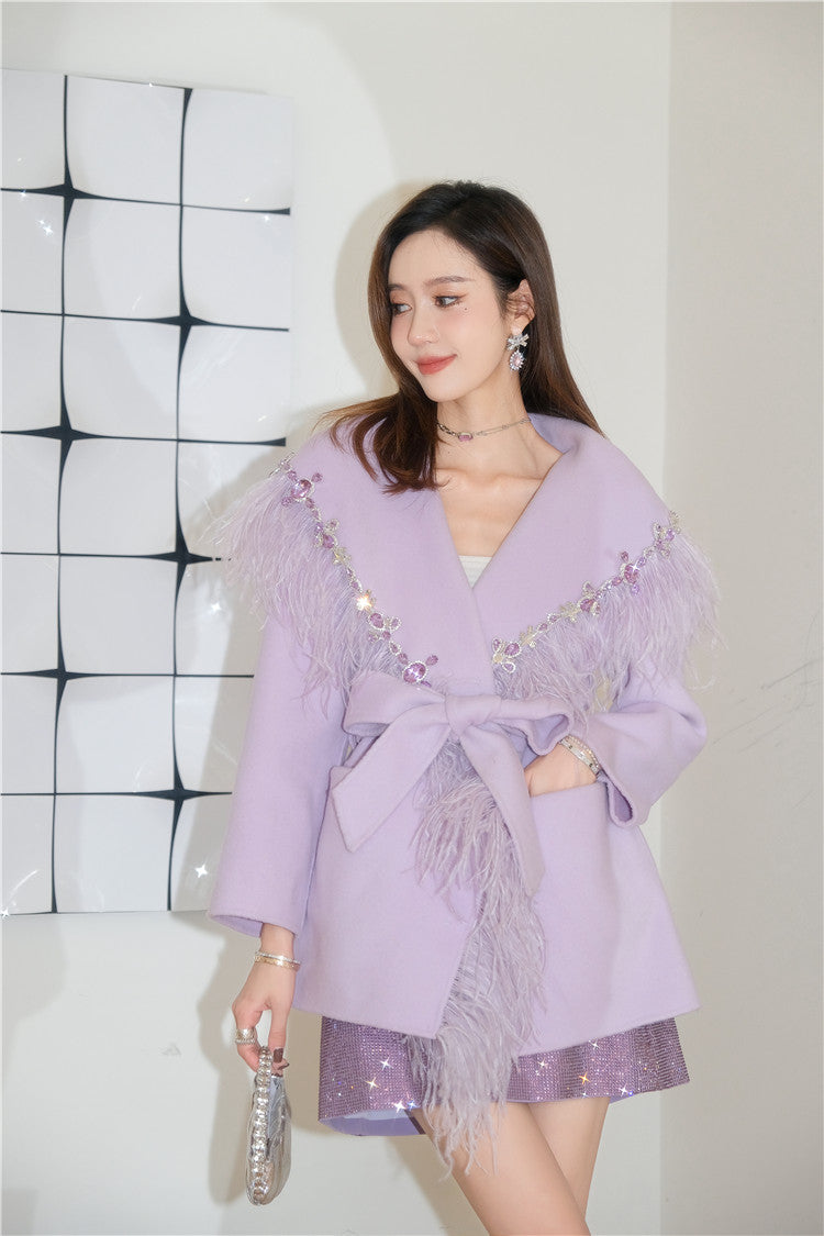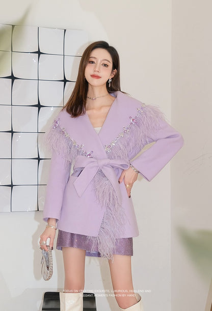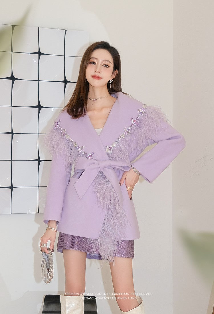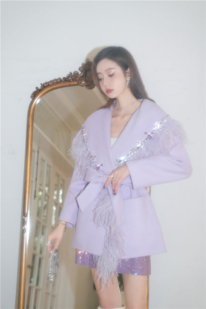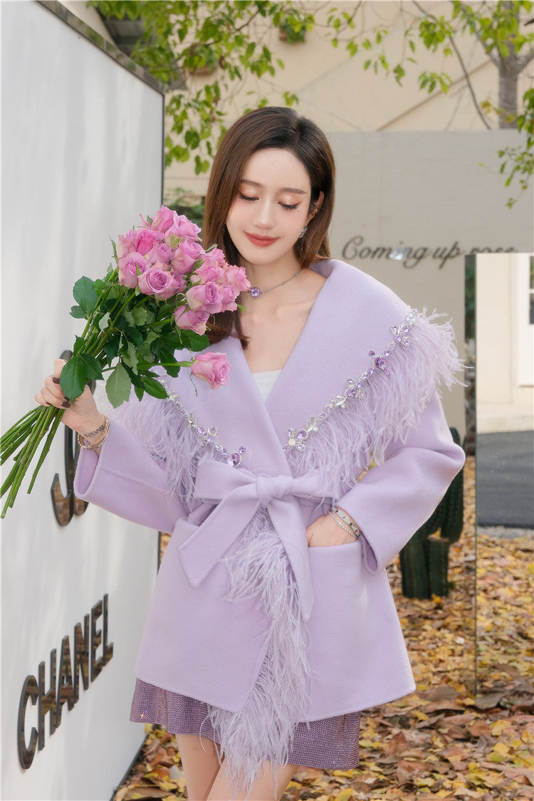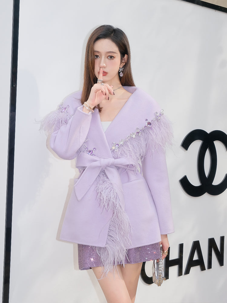 Wardrobes by Chen Luxury Light Purple Diamond-encrusted Cashmere Coat-Adile