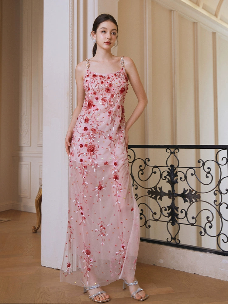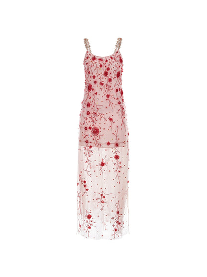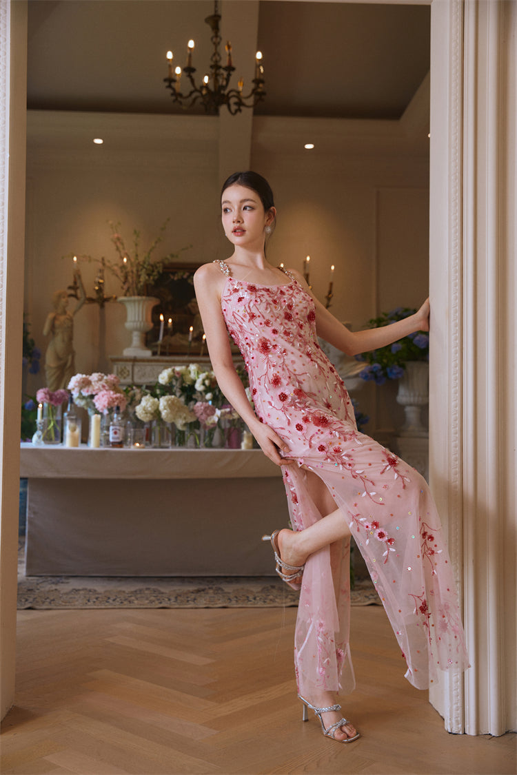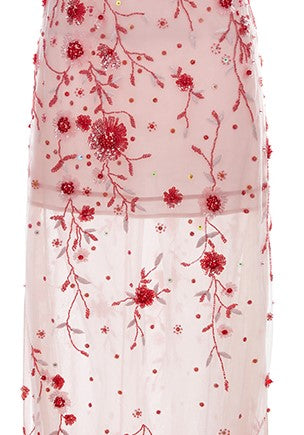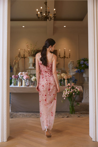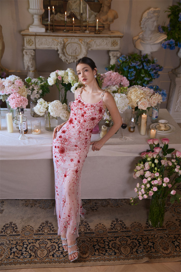 Wardrobes by Chen Luxury Pink Diamond red flower Beaded Dress-Bren