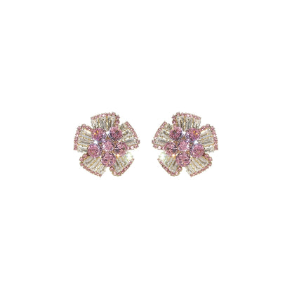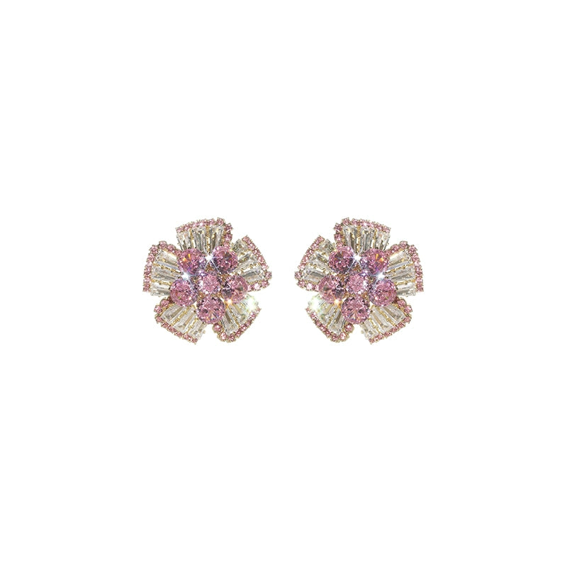 Wardrobes by Chen Luxury Pink Light Diamond Flower Earrings-Kiki