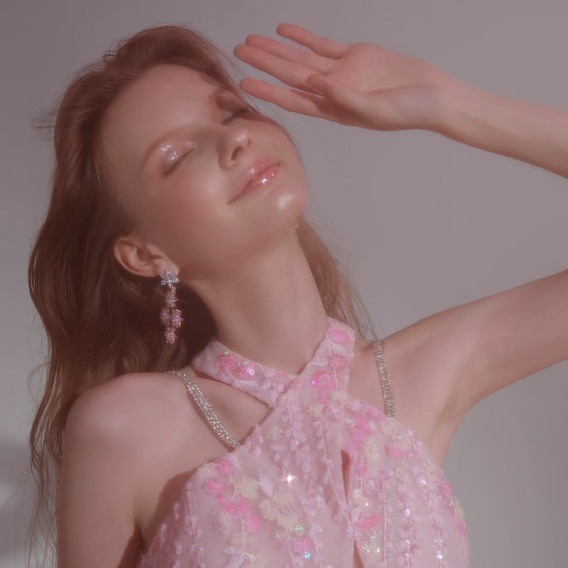 Wardrobes by Chen Luxury Pink Snow Flake Diamond Earrings- Calie