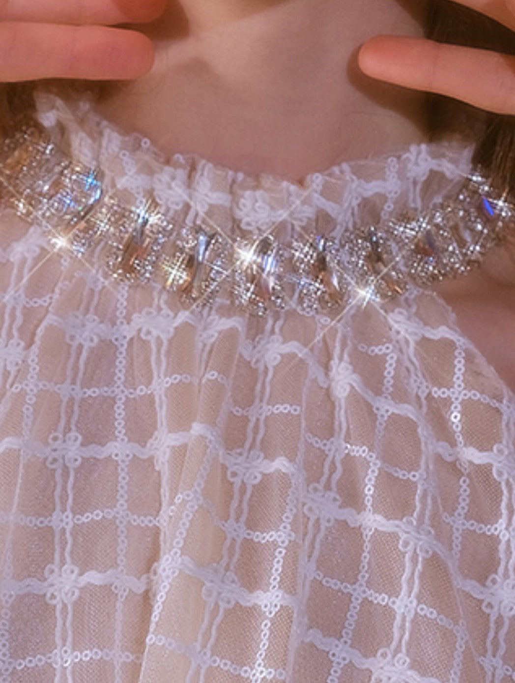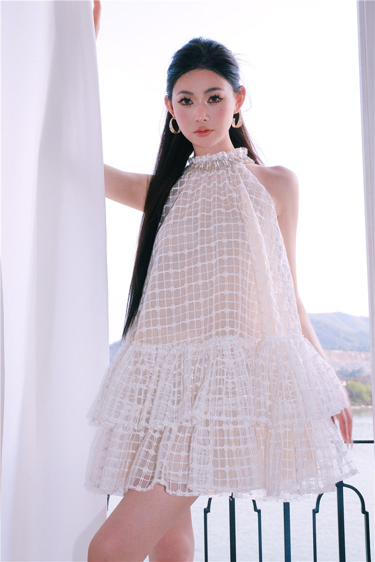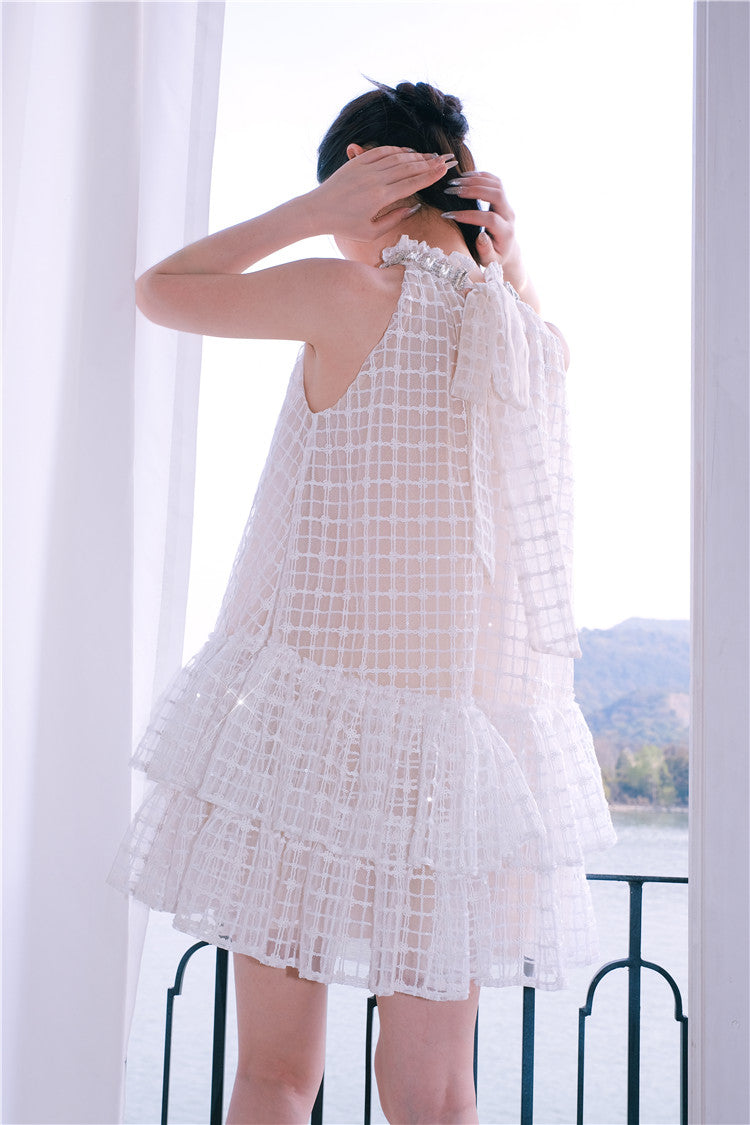 Wardrobes by Chen Luxury White Halter Neck Sequins Diamond Chain Dress-Kate