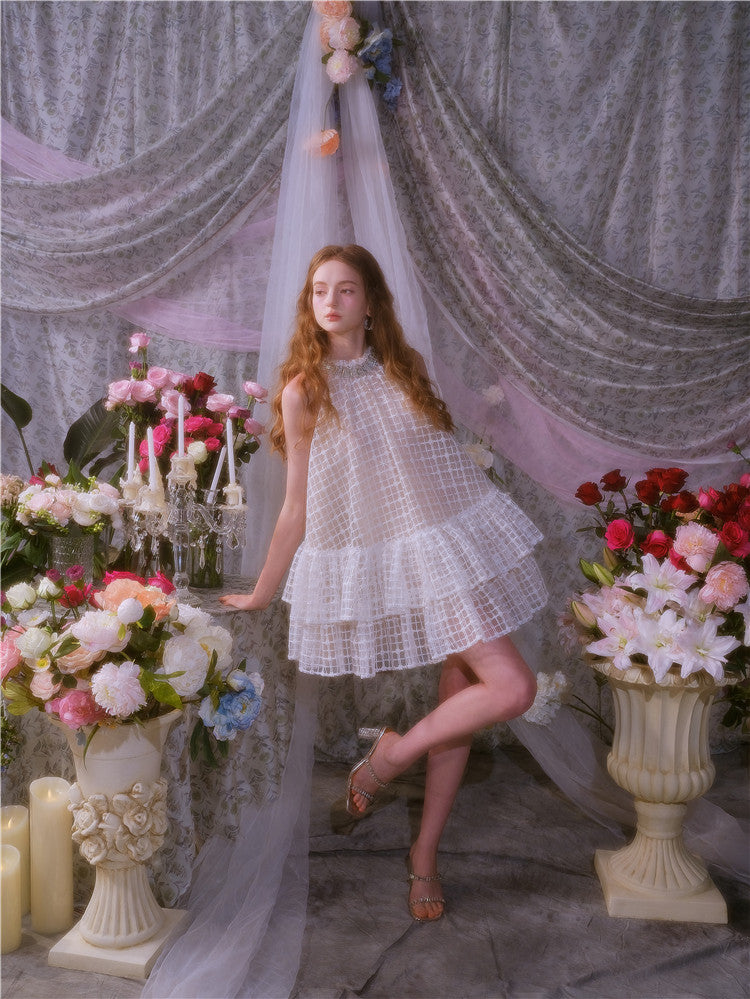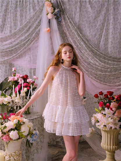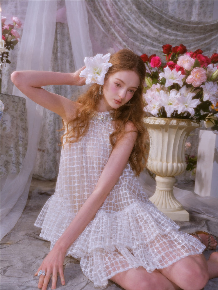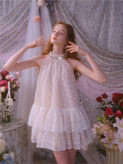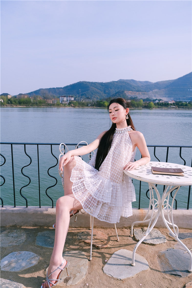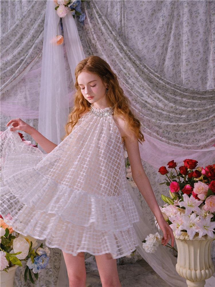 Wardrobes by Chen Luxury White Halter Neck Sequins Diamond Chain Dress-Kate