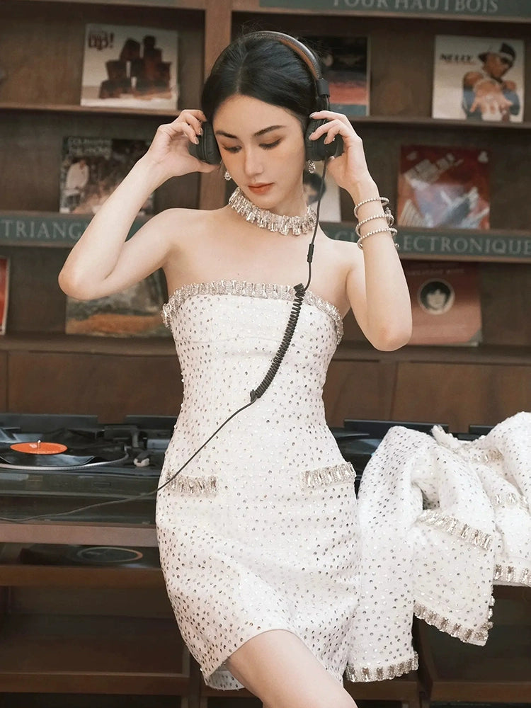 Color classification: Luxurious and bright handmade diamond coat, luxurious and bright handmade diamond tube top dress