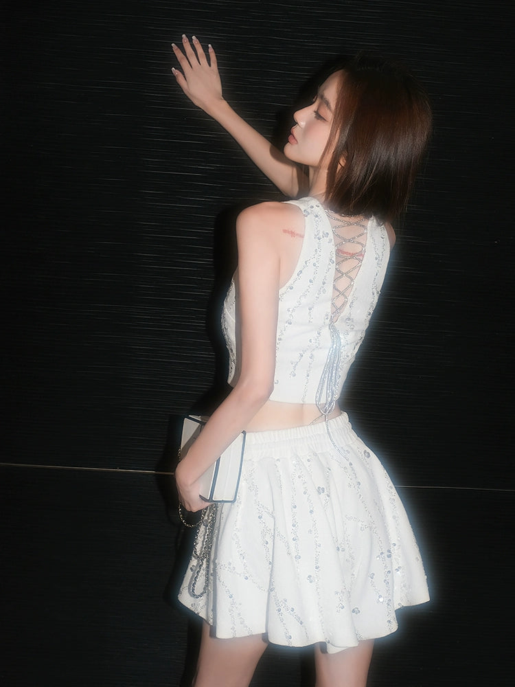 Wardrobes By Chen Luxury White Sleeveless V-Neck Vest/High Waist Shorts-Jade