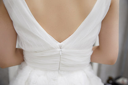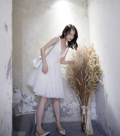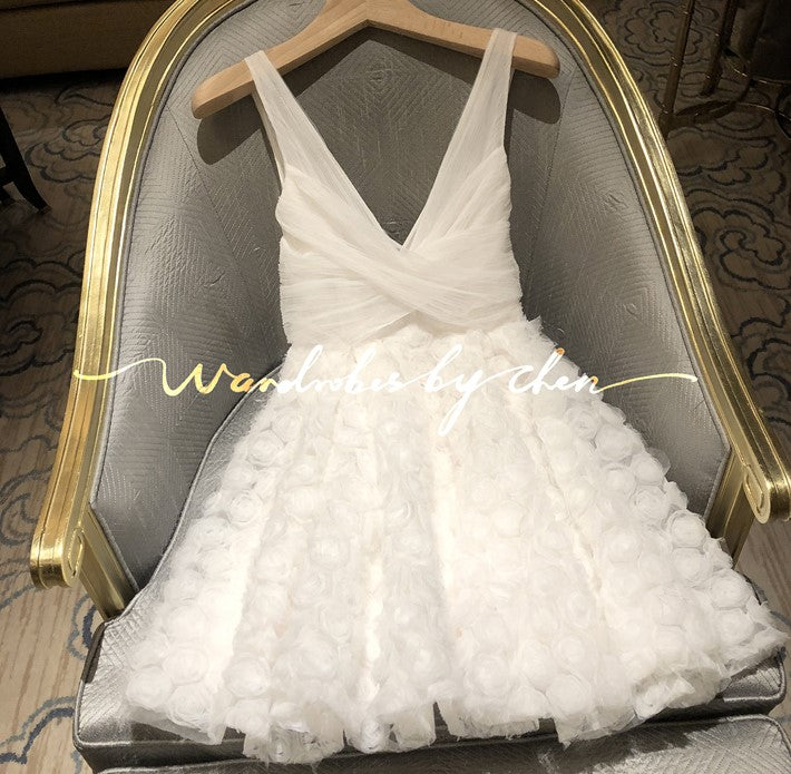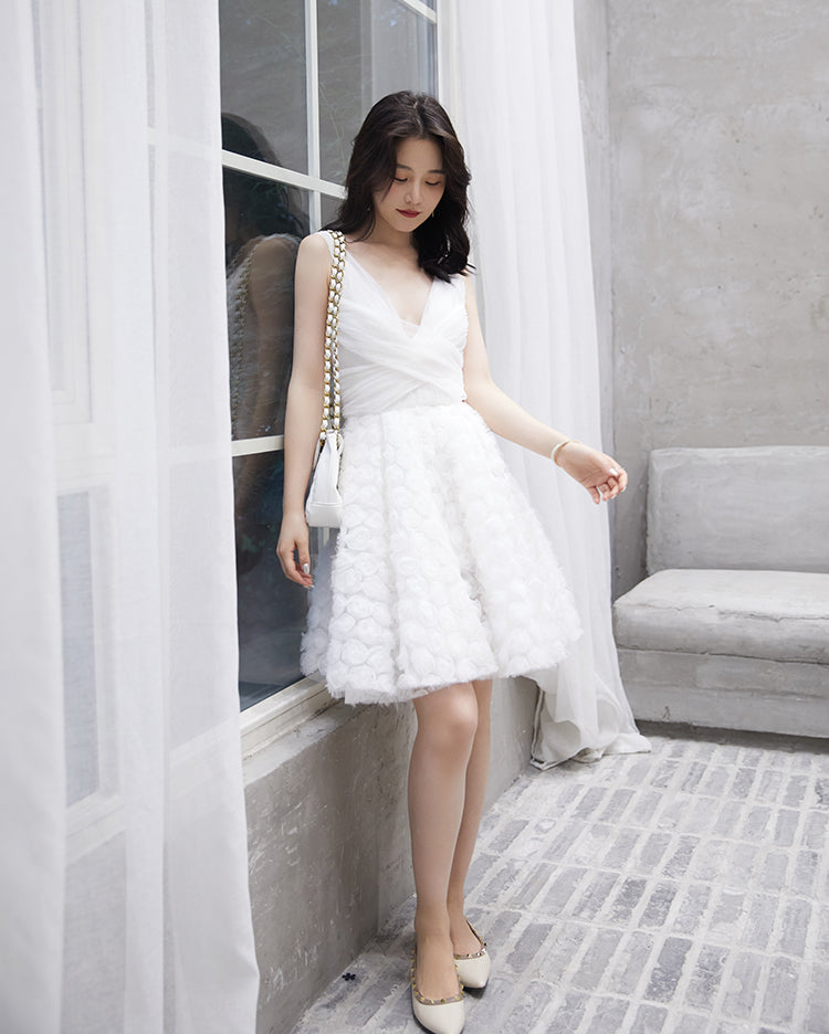 Wardrobes by Chen Luxury White V-Neck Sleeveless Short wedding Dress-Angel