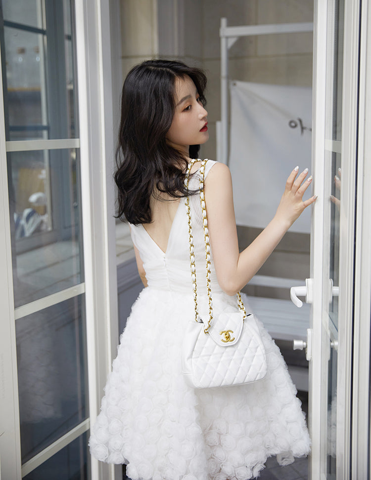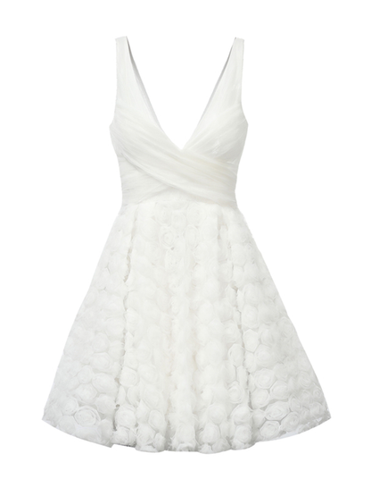 Indulge in luxury with Wardrobes by Chen's Lovely Elegant White V-Neck Sleeveless Dress, featuring a flattering chest wrap design and a short, party-ready length. Be everyone's angel in this sophisticated and exclusive piece.